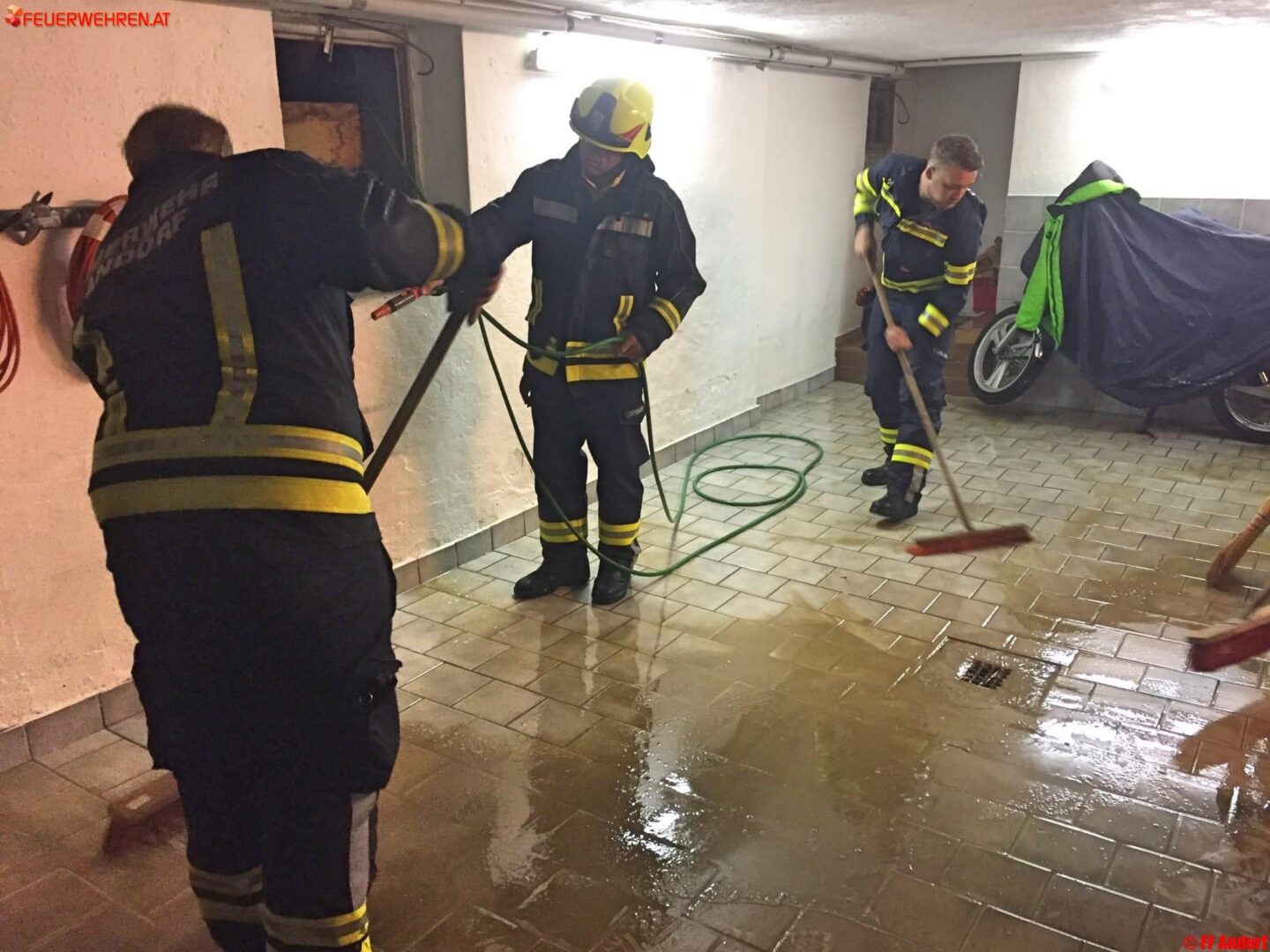 Den überfluteten Kellern rückten die insgesamt 22 Feuerwehrkameraden mit Tauchpumpen und Nasssaugern zu Leibe. Die FF Andorf war bis nach Mitternacht im Einsatz.