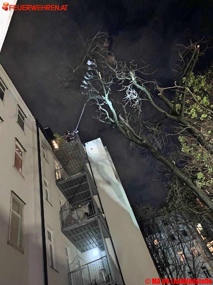 Die Berufsfeuerwehr Wien ist auch aktuell bei zahlreichen Sturmschäden im Einsatz. Es müssen lose Äste gesichert, gelockerte Dacheindeckungen fixiert und umgestürzte Bäume und Bauzäune entfernt werden. In Wien–Brigittenau durchschlugen große Äste eines morschen Baumes die Dachflächenfenster einer Wohnung. Der Wohningsinhaber wurde dabei am Kopf leicht verletzt, musste aber nicht hospitalisiert werden. Der Baum wurde im erforderlichen Ausmaß abgetragen und die Fenster abgedeckt. Die Wohnung ist zurzeit nicht bewohnbar.
