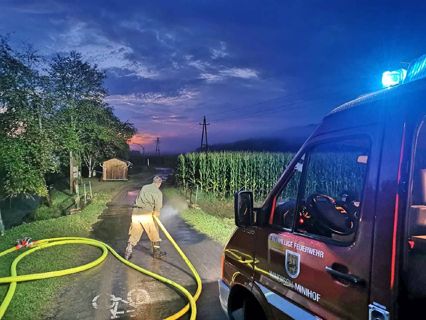 Die Feuerwehren Minihof Liebau, Mühlgraben, Neuhaus, Tauka und Windisch Minihof waren von 01:20 bis in den späten Vormittag hinein mit Aufräumarbeiten mit mehr als 30 Mann im Einsatz, um die gröbsten Spuren der Unwetter zu beseitigen.