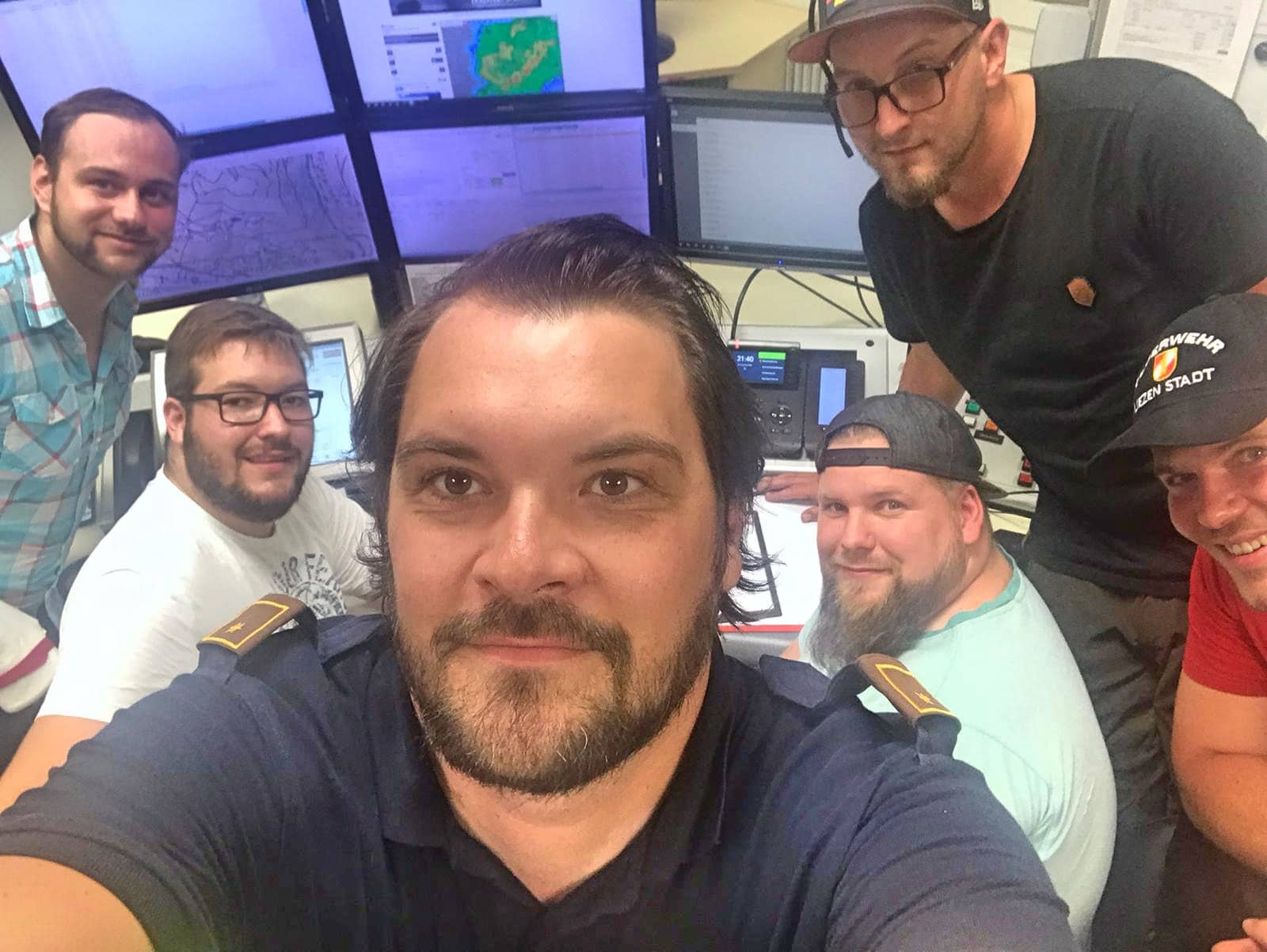 Gestern Abend zog eine Unwetterfront über den Bezirk Liezen und sorgte binnen 3 Stunden für rund zwei Dutzend Feuerwehreinsätze von 27 Feuerwehren mit über 400 Mann. Zur Disponierung des großen Einsatzumfanges wurde die Bereichswarnzentrale „Florian Liezen“ mit 5 Disponenten hochgefahren, wie bei Großschadensereignissen außerhalb der Tagesbesetzung üblich. Somit kann nicht nur die Landesleitzentrale entlastet werden, die hiesigen Disponenten verfügen über explizite Ortskenntnis und können die Einsätze daher gezielter abarbeiten, v.a. wenn diese organisationsübergreifend verlaufen. Anbei ein Selfie der heutigen Leitstellenbesatzung mit Dienststellenleiter Stefan Schröck und den ehrenamtlichen Disponenten Sebastian Emmer, Philipp Weissenbacher, Arndt Pollin, Alexander Butter und Robert Missethon.