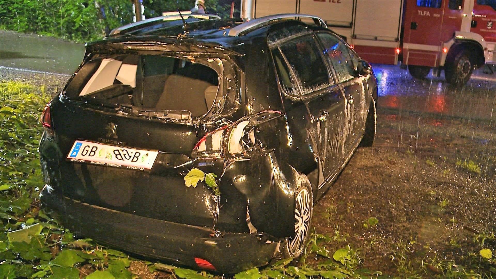 20:02 – FF Ramsau und Weißenbach bei Haus, PKW auf L725 in Baum geprallt (Bilder)