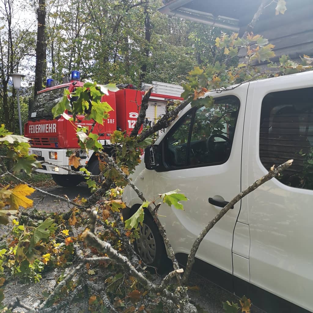 Am Ischler Kalvarienberg brach am Samstagnachmittag ein großer Ast ab und stürzte auf ein Gebäude und ein daneben stehendes Fahrzeug, was einen Einsatz für den zweiten Bereitschaftszug der Hauptfeuerwache Bad Ischl bedeutete.