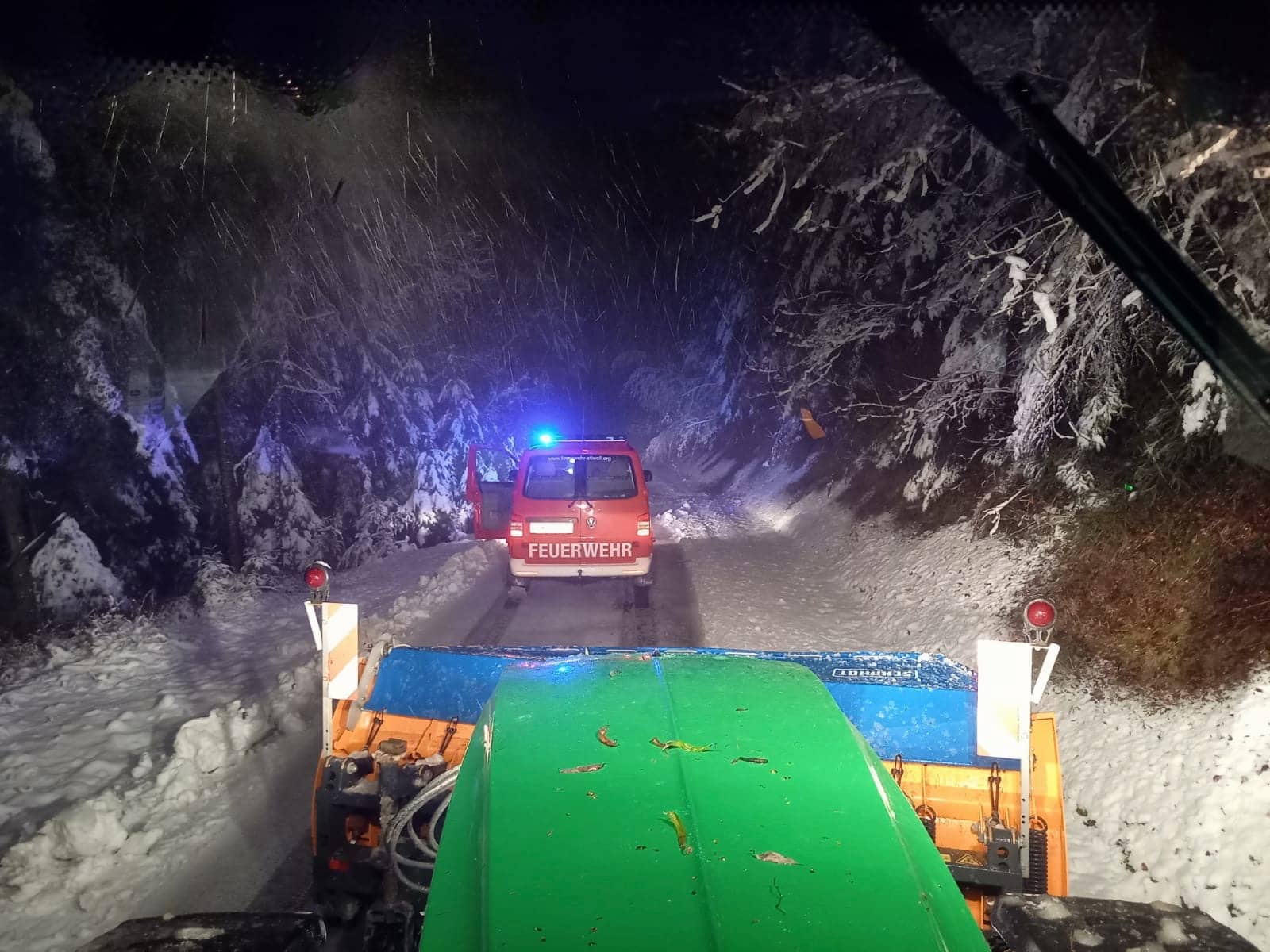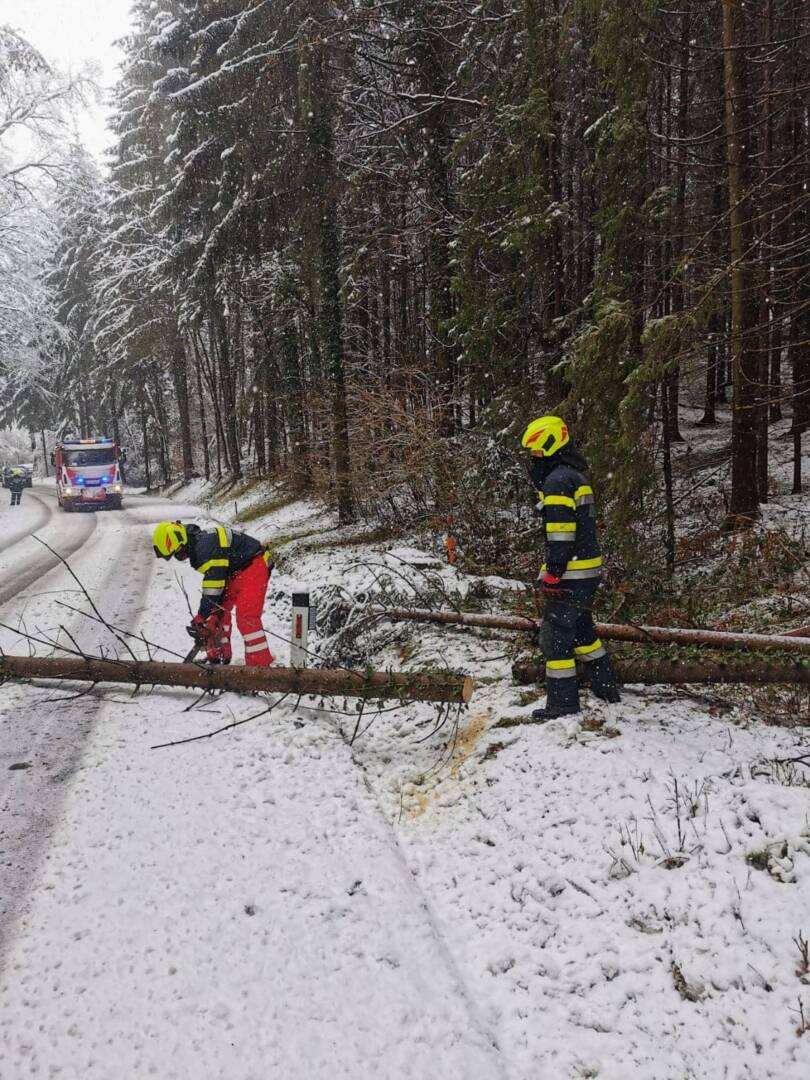 Unterstützt von Abschleppdiensten, Forstunternehmen, Gemeinde- und Straßenverwaltung wurden die gröbsten Schäden und Behinderungen von über einhundert Feuerwehrkräften in diesem Bereich behoben. Aktuell haben die Feuerwehren hier bereits über 120 Einsätze abgearbeitet. Aufgrund der anhaltenden Schneefälle ist aber noch kein Ende in Sicht.