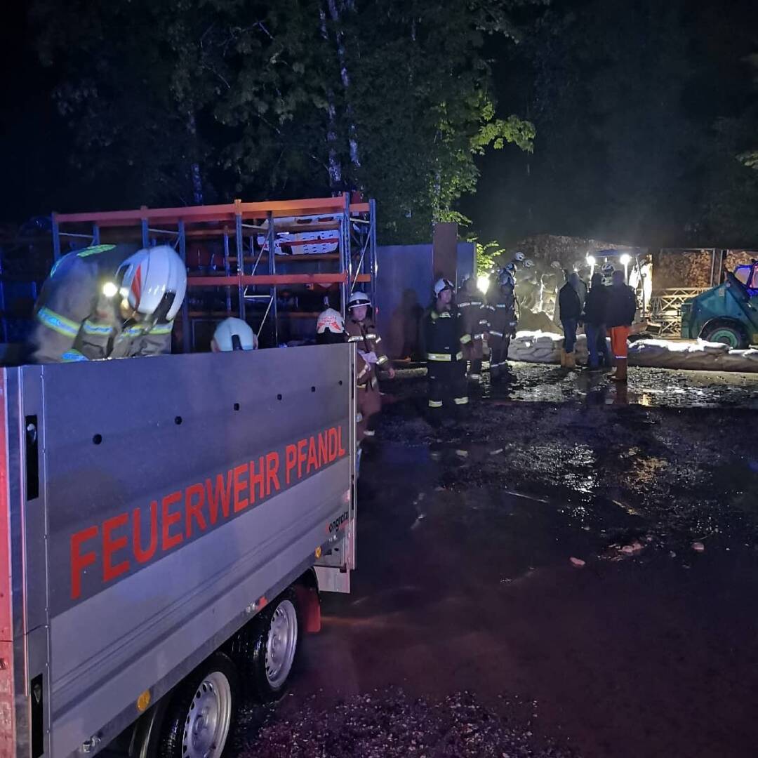 Kurze Zeit später standen mit der Hauptfeuerwache Bad Ischl, den Feuerwachen Ahorn-Kaltenbach, Reiterndorf, Rettenbach-Steinfeld-Hinterstein und der Freiwilligen Feuerwehr Pfandl, bereits fünf Ischler Einheiten im Einsatz. Es galt gefährdete Fahrzeuge aus Gefahrenbereichen zu bergen. Überflutete Keller mussten ausgepumpt und vermurte Verkehrswege frei gemacht werden. Außerdem galt es einzelne Uferbereiche von Bächen und Flüssen mit Sandsäcken zu sichern, um Überflutungen von Objekten und Straßen zu verhindern.