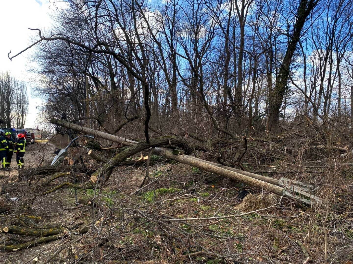 Das Sturmtief am 30. Jänner brachte auch in Ebenfurth Einsätze mit sich. Mehrere Bäume stürzen in einer Seitenstraße um und begruben einen Strommasten unter sich.