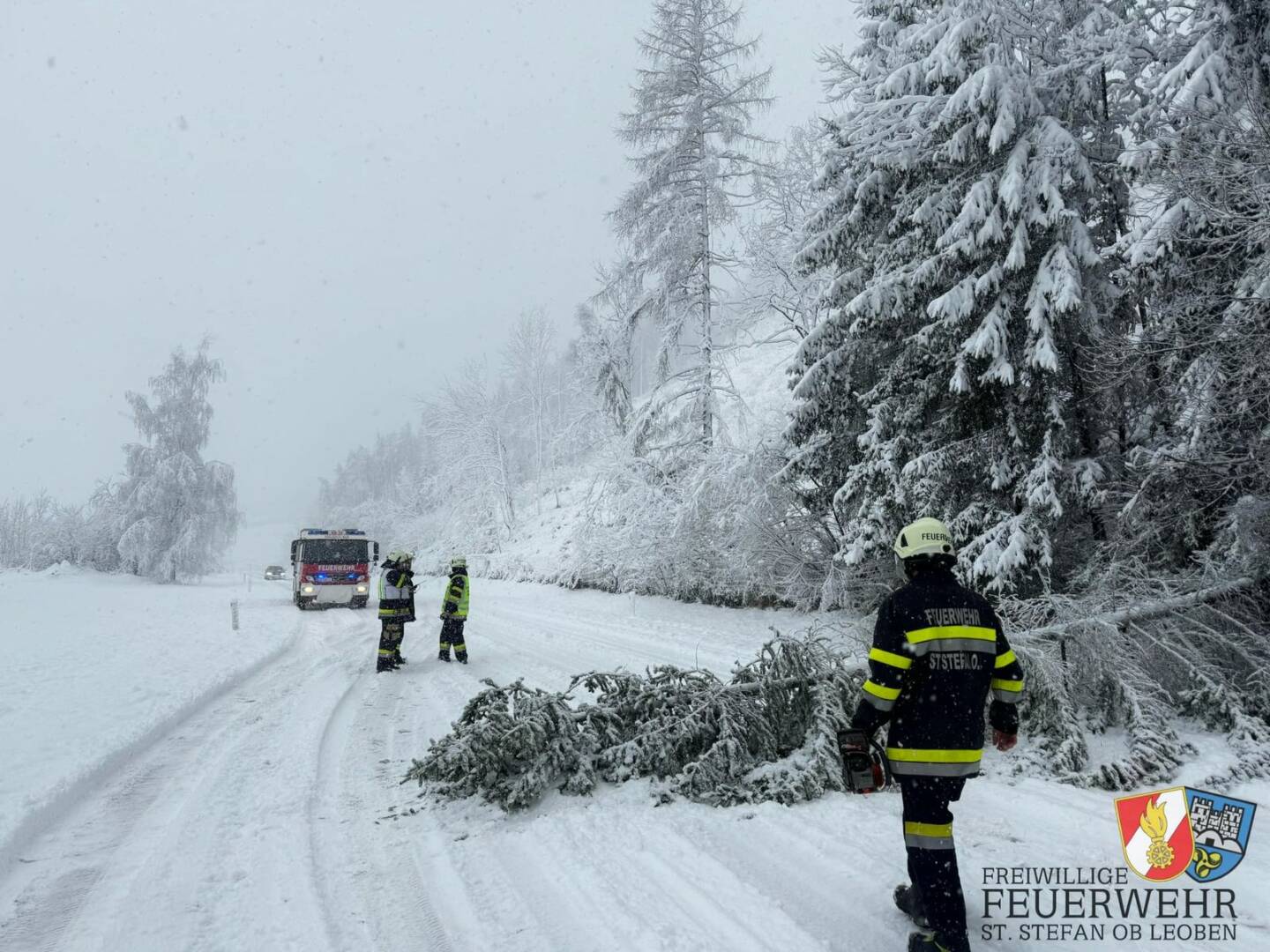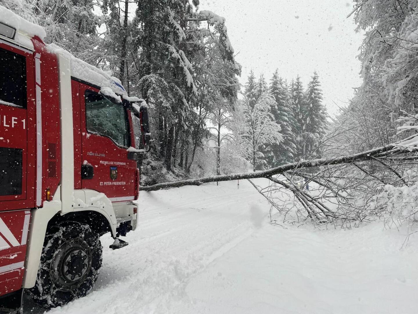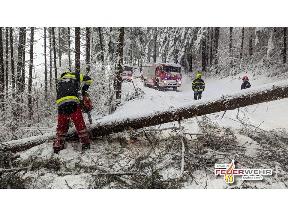 Der massive Schneefall am Samstag, den 2. Dezember, forderte auch die Feuerwehren des gesamten Bereichsfeuerwehrverbandes Leoben enorm. Rund 300 Einsatzkräfte von 19 Feuerwehren mussten seit den frühen Morgenstunden den gesamten Samstag über 120 Einsätze bewältigen.