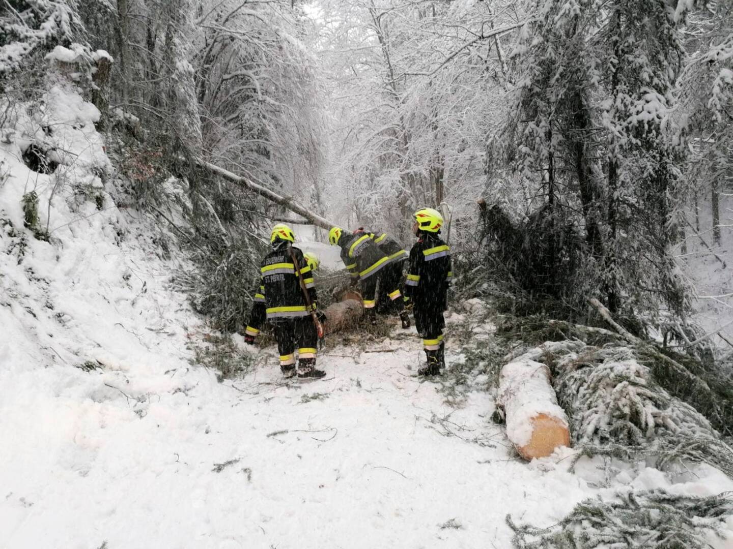 Den Großteil des Einsatzaufkommens machten umgestürzte Bäume auf Verkehrswegen aus, welche unter der hohen Schneelast knickten. Aber auch zahlreiche Verkehrsunfälle und Fahrzeugbergungen mussten von den Feuerwehren unter widrigsten Bedingungen abgearbeitet werden. Auf der A9 bei St. Michael blieben zahlreiche Lkw hängen, welche durch die Einsatzkräfte abgeschleppt und wieder in Bewegung gesetzt werden mussten.