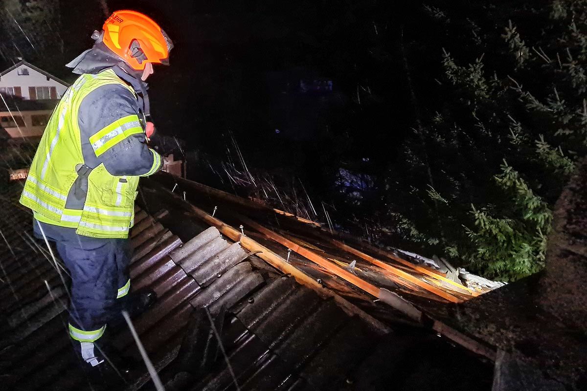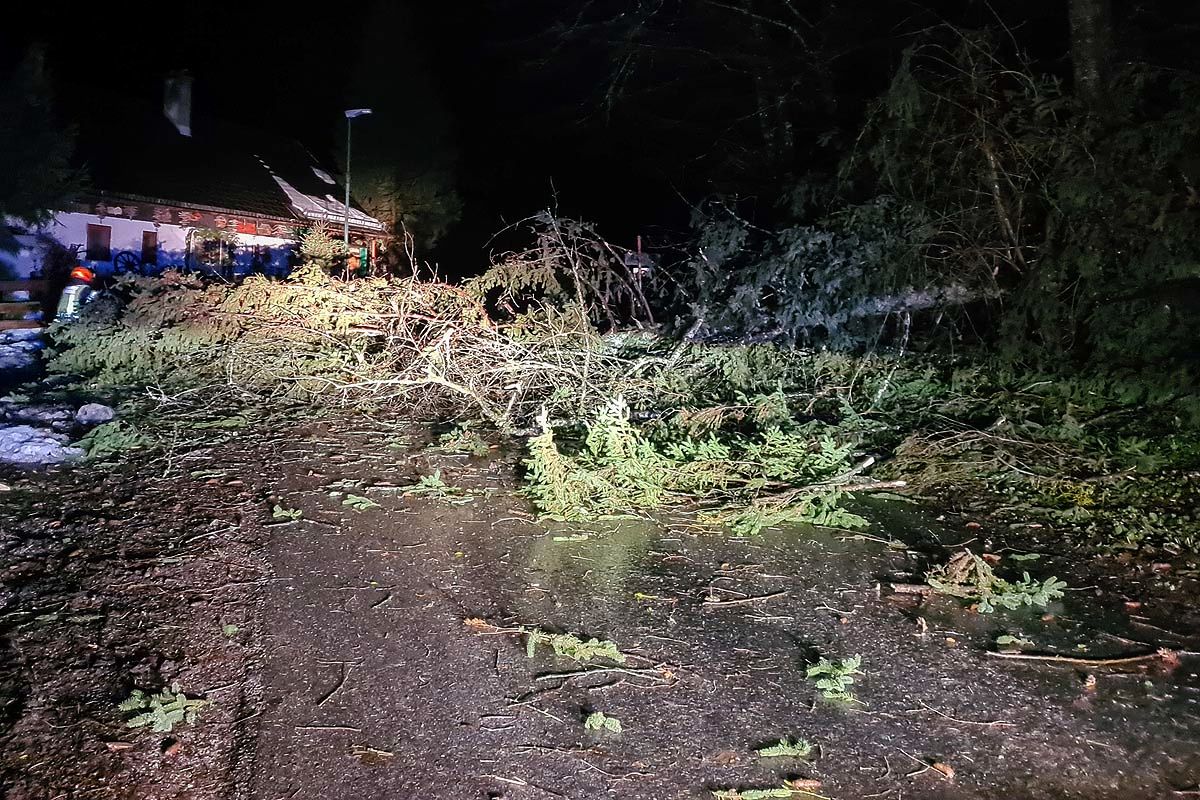 War man schon in der vorherigen Nacht bis in die frühen Morgenstunden im Einsatz, langten mit Tagesanbruch schon wieder die nächsten Alarmierungen ein. Wiederum galt es zahlreiche Sturmschäden zu beseitigen.
