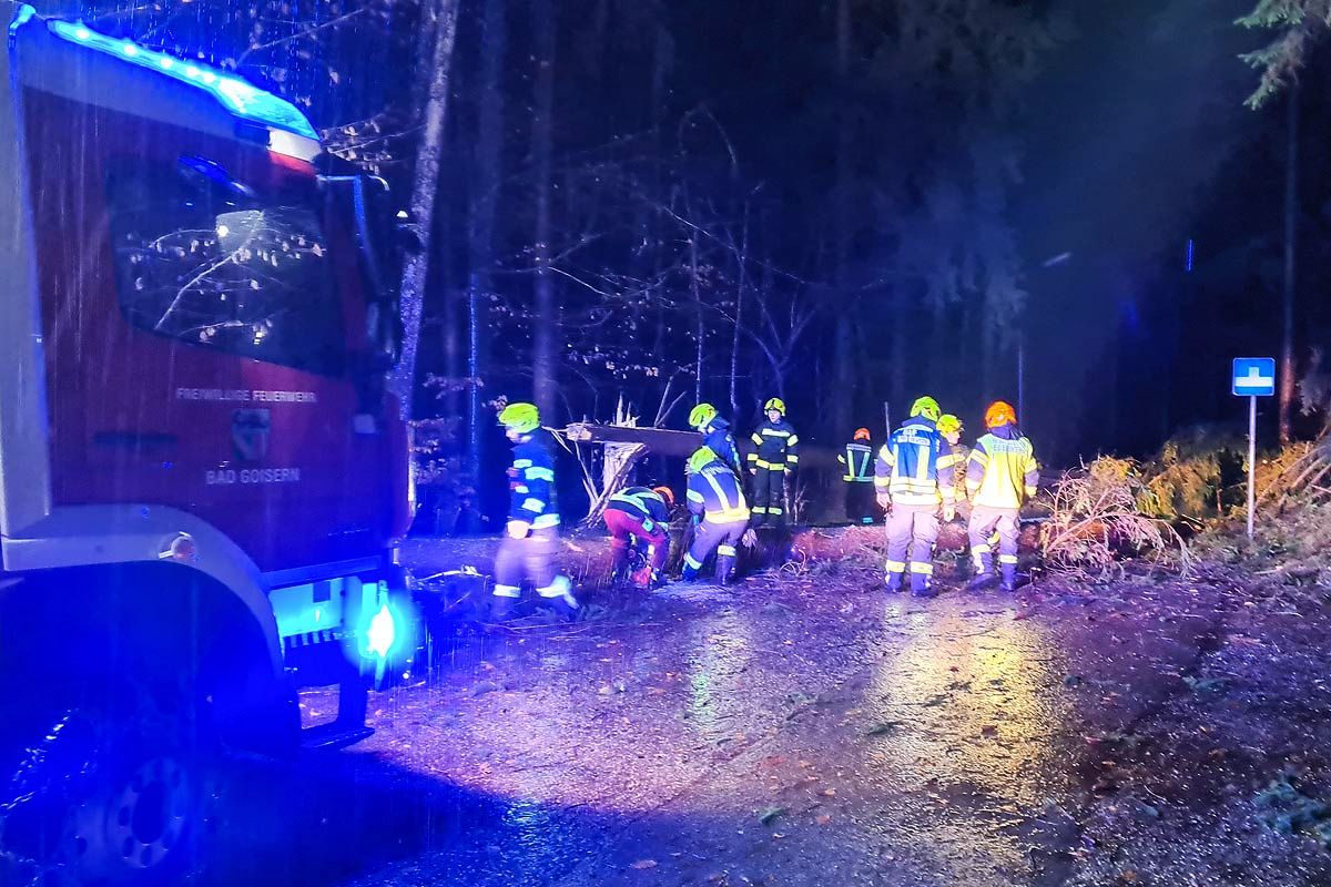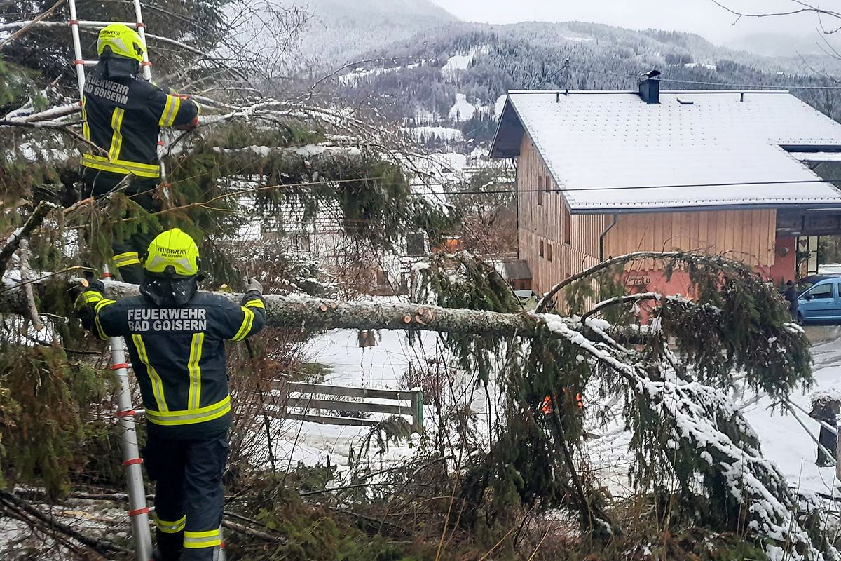 Seit Beginn des aktuellen Sturmtiefs stehen derzeit die Mitglieder der FF Bad Goisern im Dauereinsatz – weit weg von vorweihnachtlicher Stille…