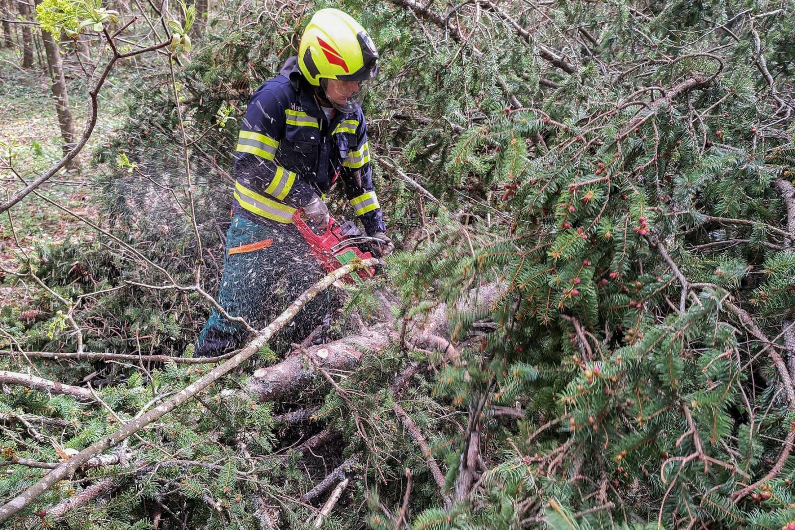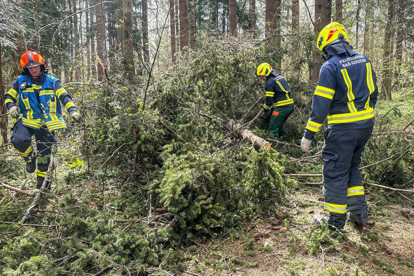Im Sturmeinsatz stand die FF Bad Goisern am Ostermontag, den 1. April 2024: Keine Feiertagsruhe war den Einsatzkräften gegönnt, nachdem heftige Windböen einen Baum zu Fall gebracht hatten. Dieser war quer über die Fahrbahn der Ramsaustraße gestürzt, an einer Stelle, die vom letzten Sturmereignis im Winter bereits hinlänglich bekannt war. Mittels Motorsäge konnten die Kräfte den Baum rasch zerkleinern und von der Fahrbahn schaffen.