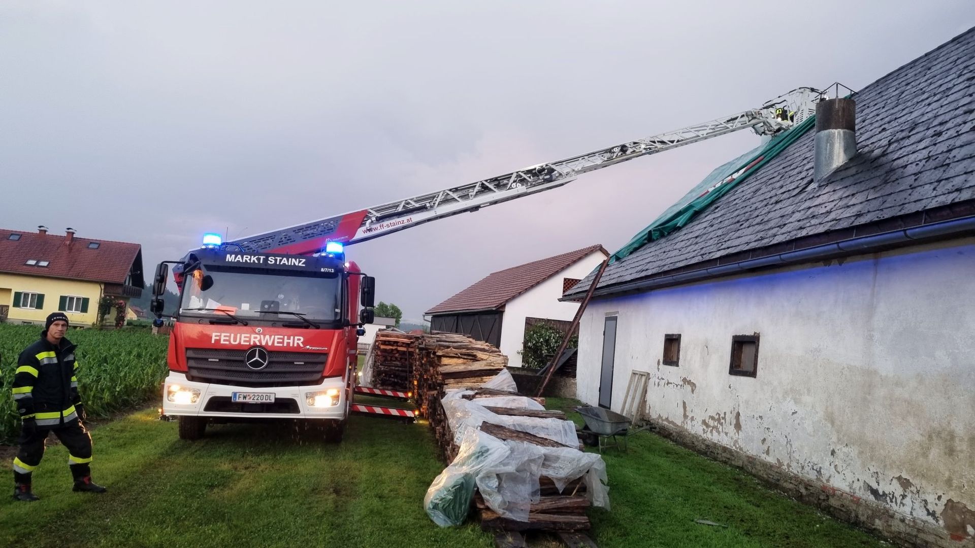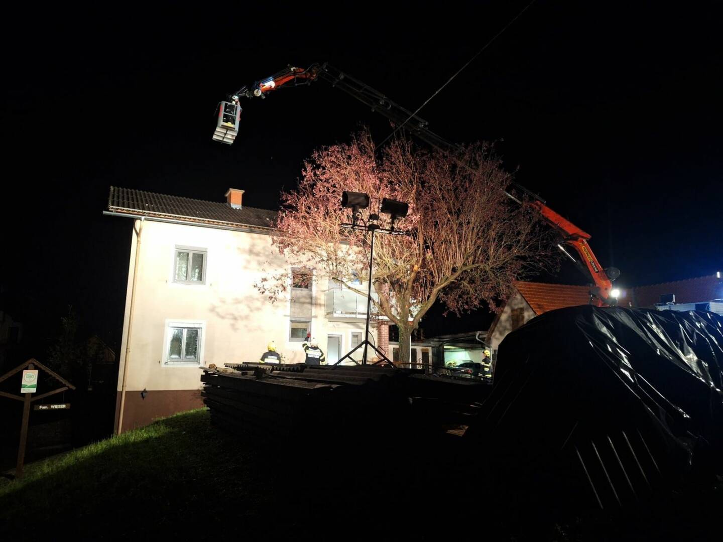 Gefragt waren Drehleitern und Kräne sowie Trupps der Menschenrettung und Absturzsicherung, um die Dächer mit Planen notdürftig zuzudecken und so die Häuser vor eindringendem Regenwasser zu schützen. Zur Einsatzkoordination wurde im Rüsthaus St. Martin der Abschnittsführungsstab des Abschnittes 4 eingerichtet sowie die Bereitschaft der Bereichsalarm- und Warnzentrale „Florian Deutschlandsberg“ alarmiert und in Dienst gestellt. Vor Ort im Führungsstab machten sich unter anderem Bgm. LAbg. Maria Skazel aus St. Peter, Bgm. Franz Silly aus St. Martin, Bereichsfeuerwehrkommandantstellvertreter BR Wolfgang Fellner und Abschnittsfeuerwehrkommandant ABI Oskar Strametz ein Bild der Lage.