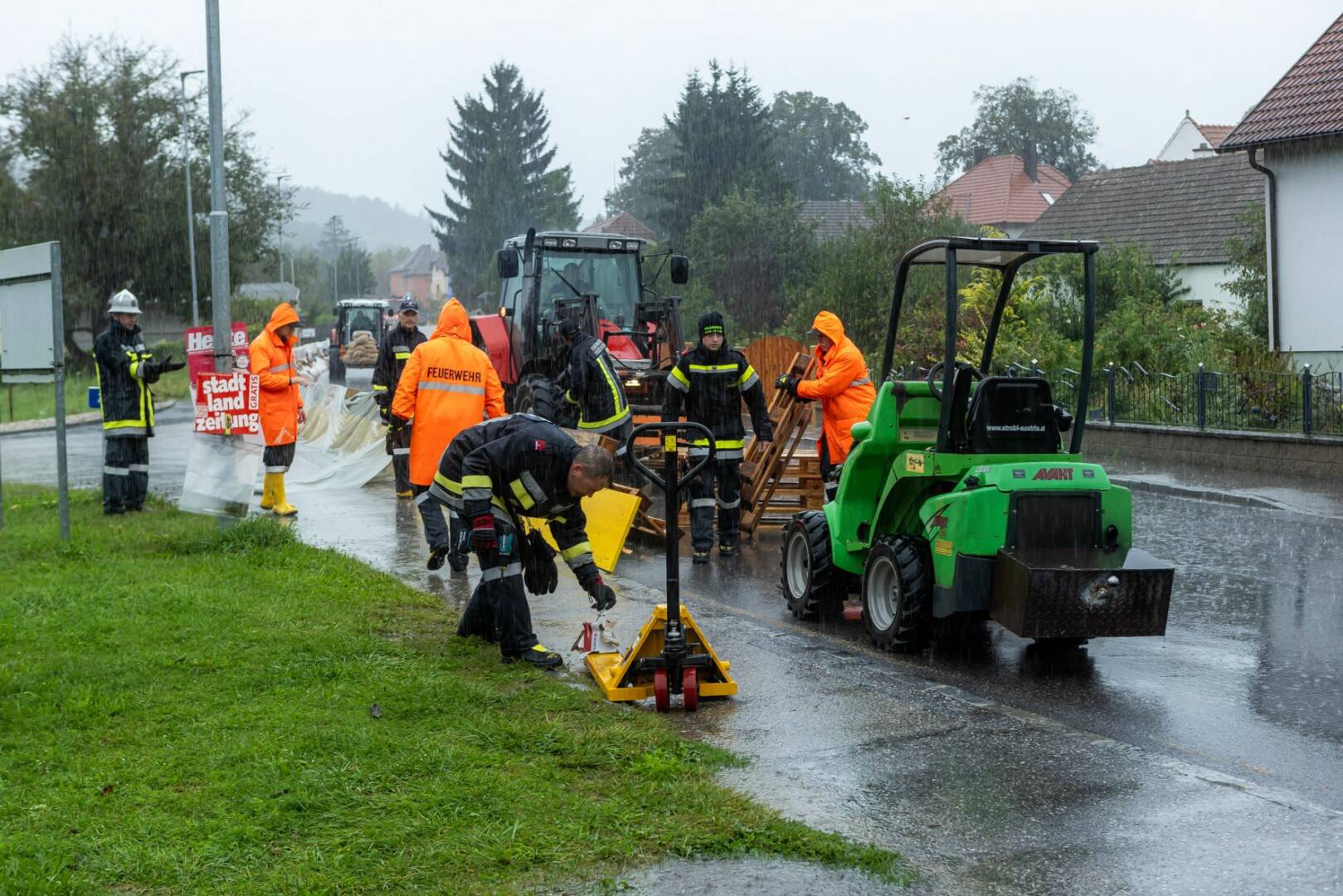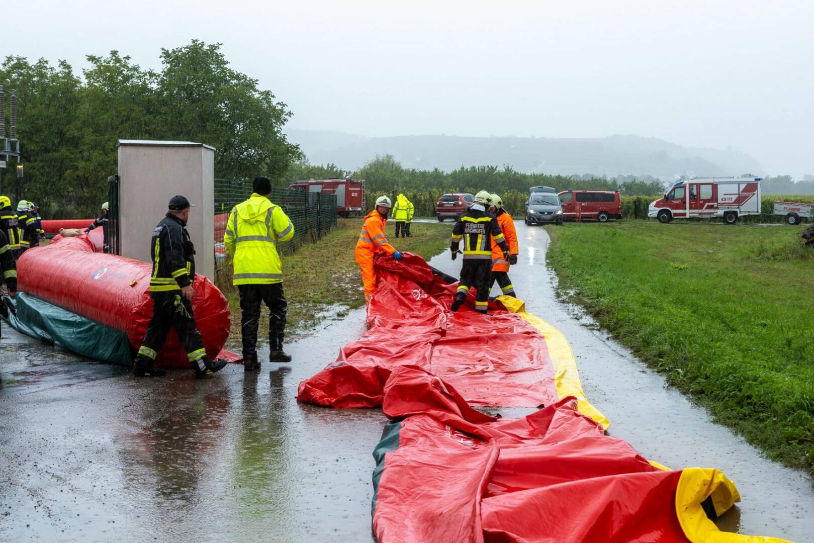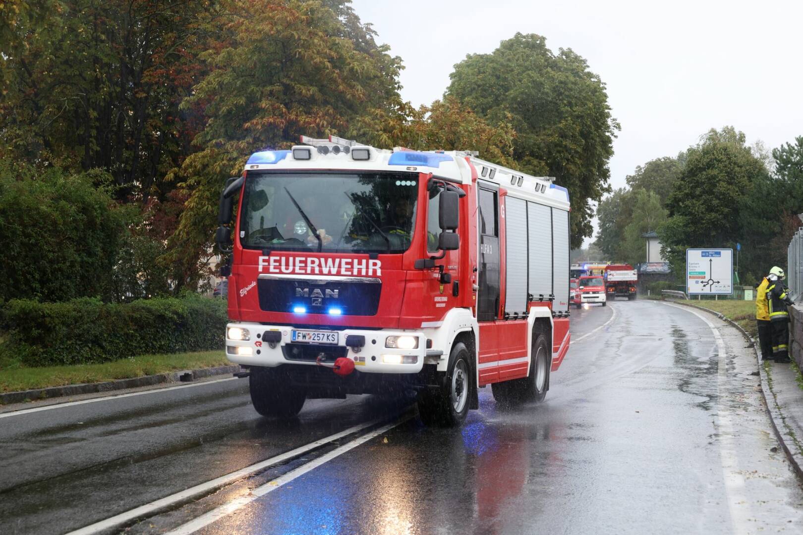 Die starken Regenfälle der vergangenen Tage haben am Samstag, 14.09.2024, umfassende Hochwasserschutzmaßnahmen notwendig gemacht: Im Stadtgebiet von Krems wurden Teile des mobilen Hochwasserschutzes aufgebaut. Auf dem Krems-Fluss wurde der Hochwasseralarm ausgelöst. In Langenlois waren zwei KHD-Züge im Einsatz. Und die Sperre der Bundesstraße 3 wurde mit 17.30 Uhr ausgeweitet.