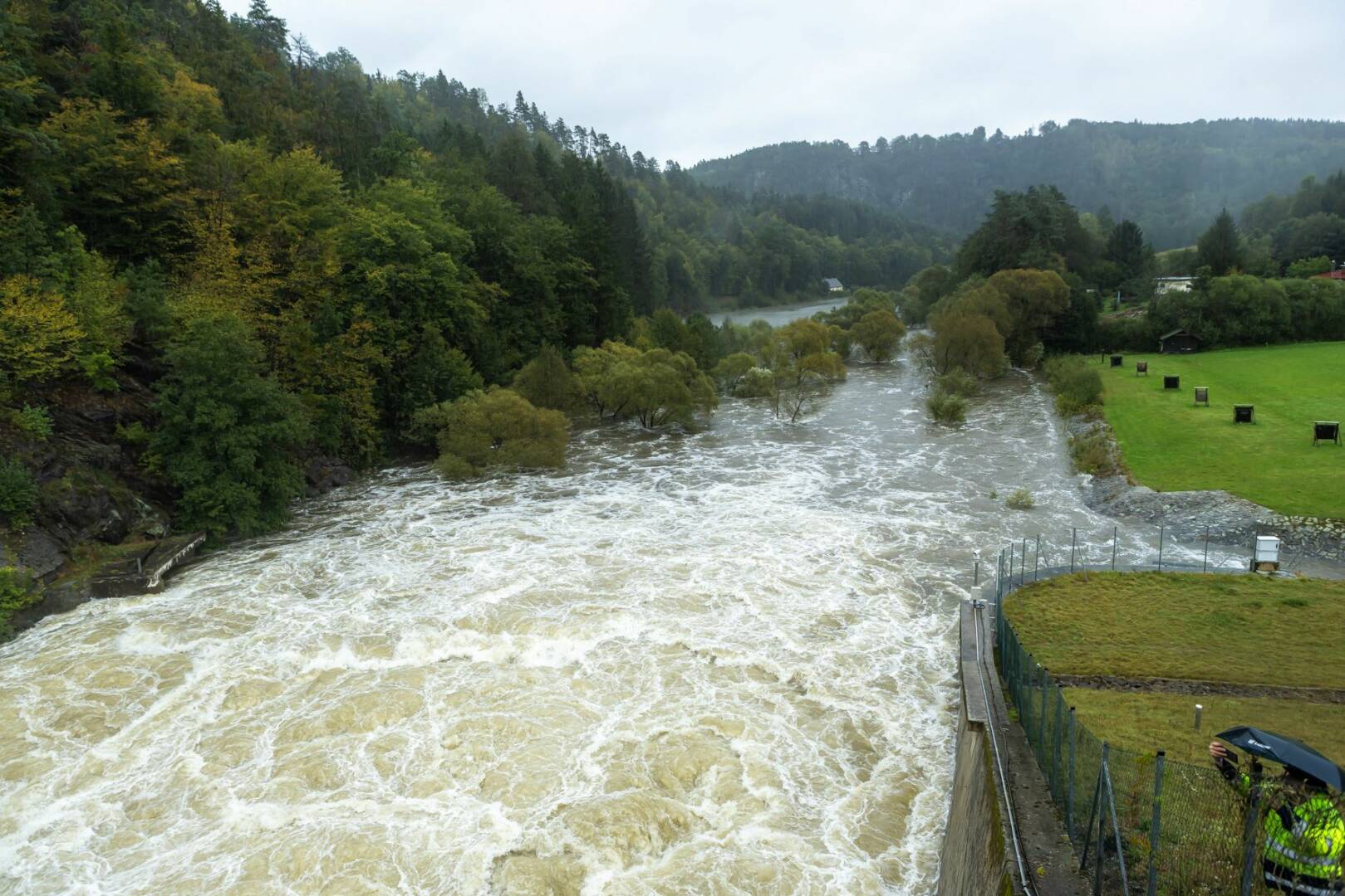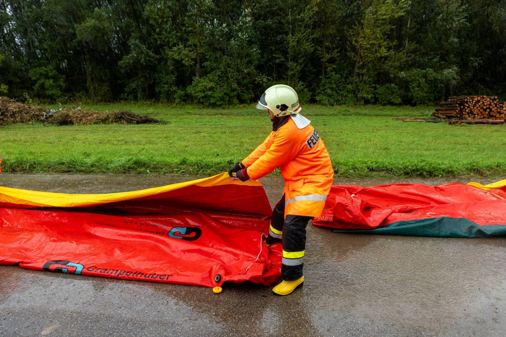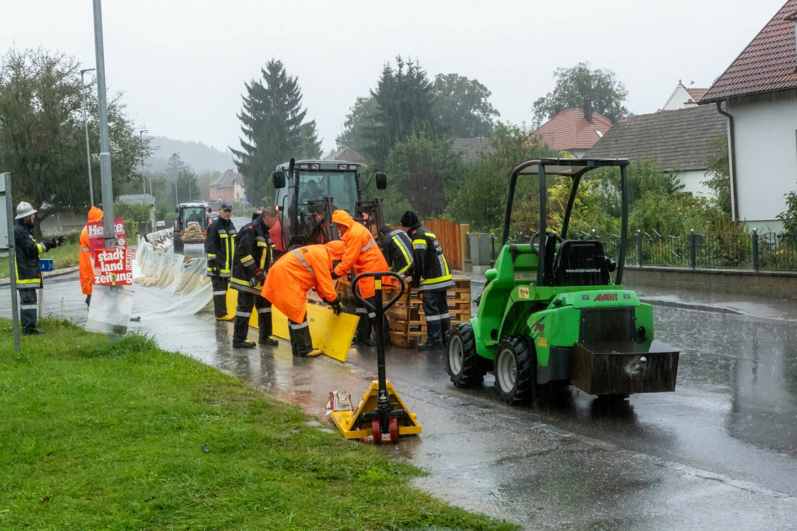 Die starken Regenfälle der vergangenen Tage haben am Samstag, 14.09.2024, umfassende Hochwasserschutzmaßnahmen notwendig gemacht: Im Stadtgebiet von Krems wurden Teile des mobilen Hochwasserschutzes aufgebaut. Auf dem Krems-Fluss wurde der Hochwasseralarm ausgelöst. In Langenlois waren zwei KHD-Züge im Einsatz. Und die Sperre der Bundesstraße 3 wurde mit 17.30 Uhr ausgeweitet.