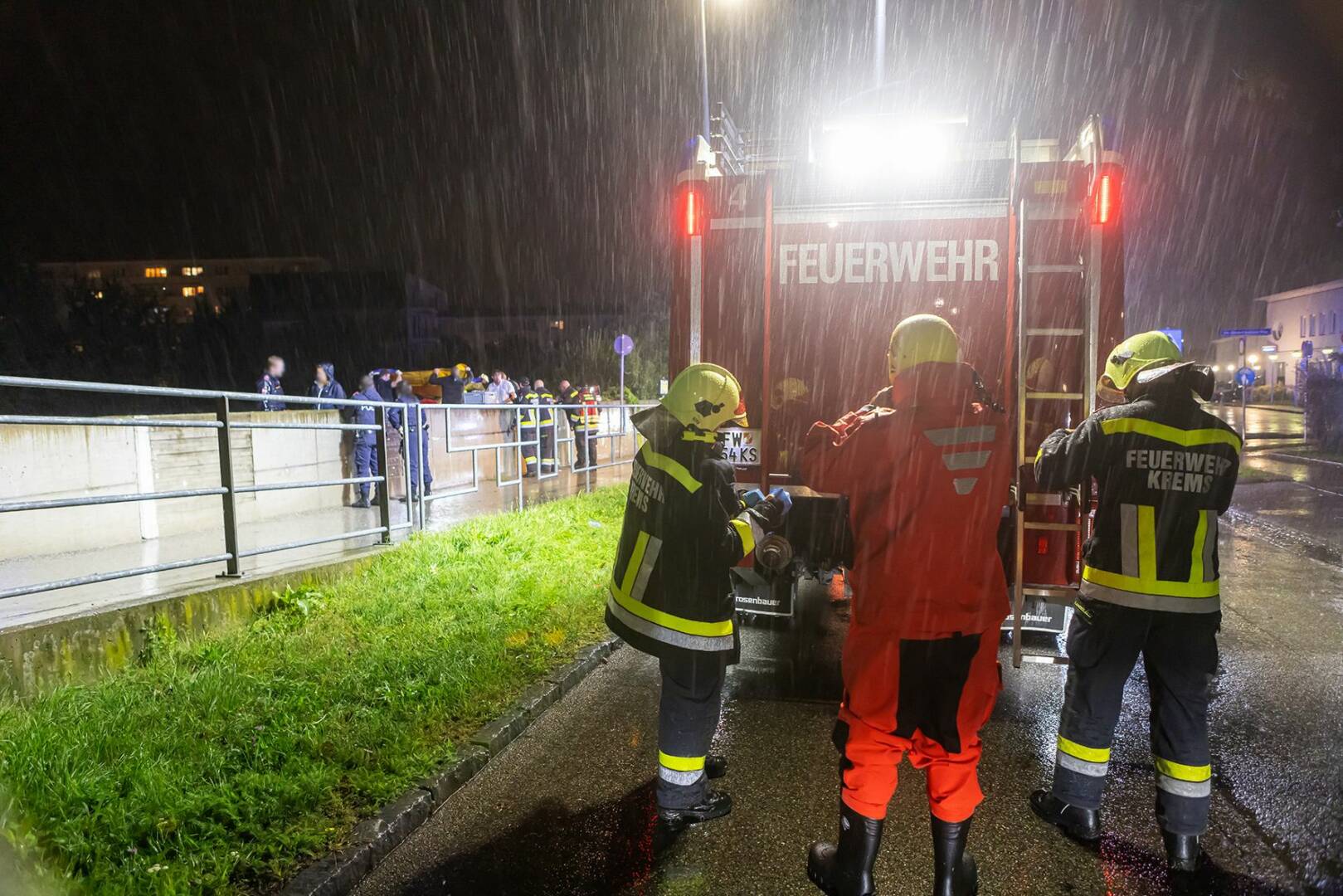 Die Feuerwehr appelliert eindringlich, sämtliche Absperrungen zu beachten und Wege und Brücken, die mit Scherengittern oder Absperrbändern gesperrt sind, nicht zu betreten. „Das ist nicht nur behördlich untersagt, sondern auch lebensgefährlich“, sagt der Kommandant der Freiwilligen Feuerwehr Krems, Gerhard Urschler. Der Uferbereich der Krems ist stark durchnässt und kann jederzeit nachgeben. Ein rückläufiger Pegel bedeutet nicht, dass die Gefahr gebannt ist.