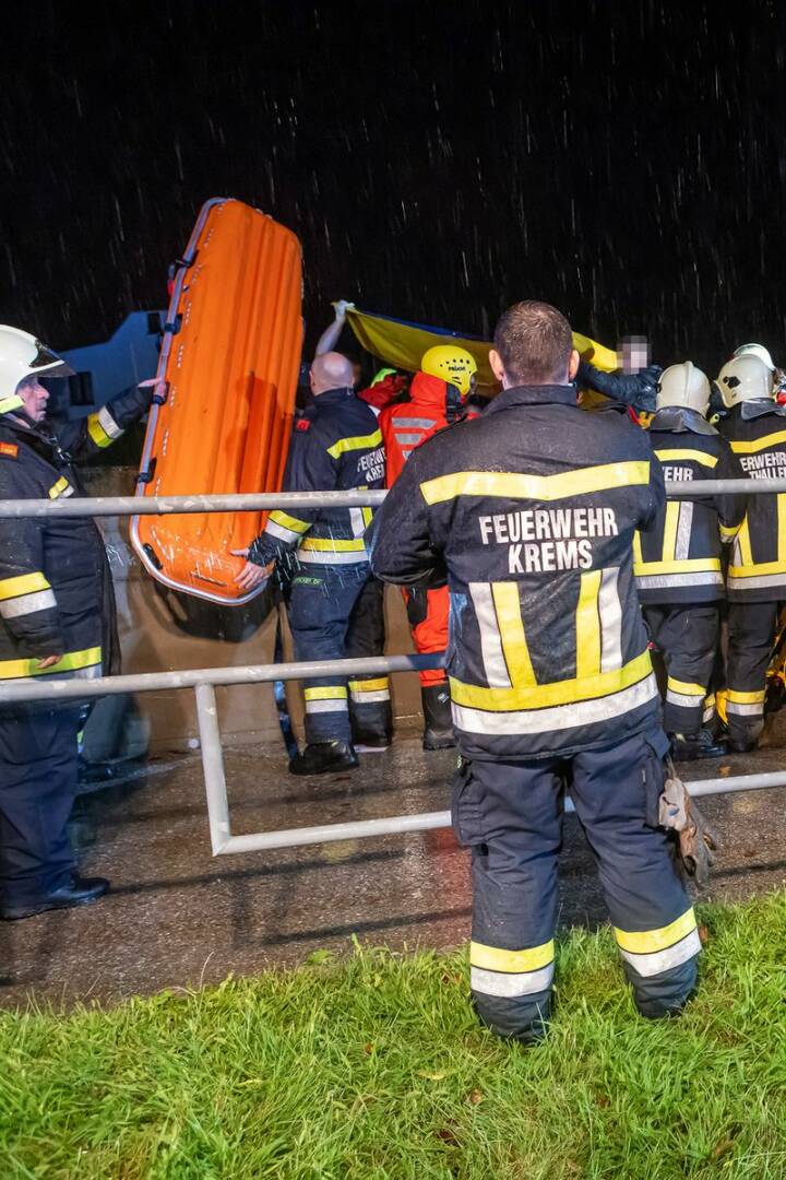 Die Einsatzkräfte der Freiwilligen Feuerwehr wurden um 19.45 Uhr alarmiert. Passanten hörten die Hilferufe des Mannes und zögerten nicht, ihn gegen ein Abrutschen in die Krems zu sichern. Nachdem die Feuerwehrleute wenig später in der Rechten Kremszeile eintrafen, brachten sie den Mann zurück in den sicheren Bereich und übergaben ihn an die Kräfte der Rettung.