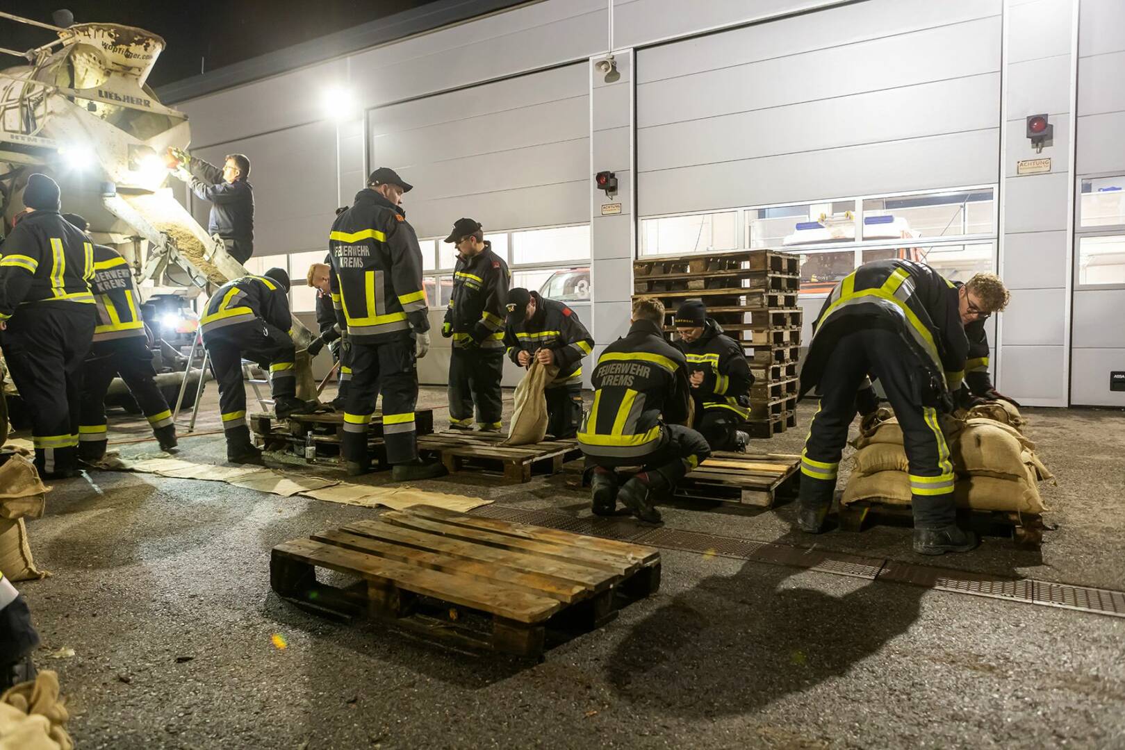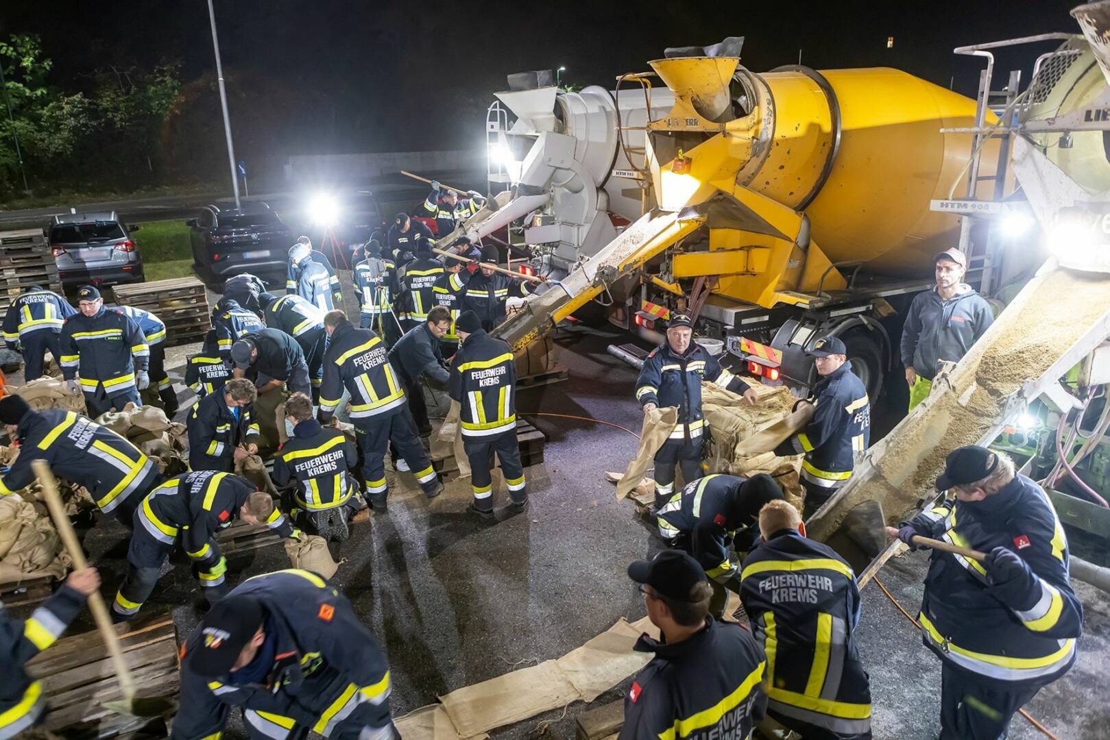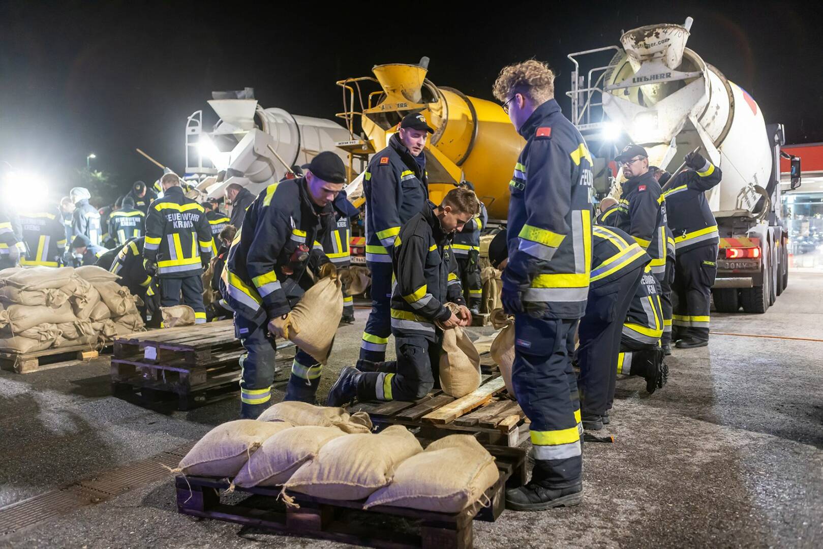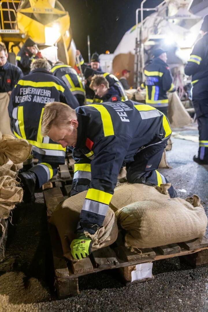Um 85 Häuser und 60 Wohnungen einer Siedlung im Norden von Hadersdorf bestmöglich schützen zu können, wurde über Nacht ein Sandsackwall mit 3.500 Sandsäcken errichtet. Bis zum Einbruch der Dunkelheit absolvierte ein Black Hawk des Bundesheeres außerdem erste Flüge, um den Naturdamm des Gschinzbaches zu stabilisieren. Dieser geriet am Sonntagnachmittag an seine Belastungsgrenze – Wasser strömte auf beiden Seiten auf umliegende Felder. „Im Falle eines Dammbruchs sind Siedlungsgebiete in Hadersdorf sowie Kammern und Straß im Straßertale bedroht“, sagt Bezirksfeuerwehrkommandant Martin Boyer.