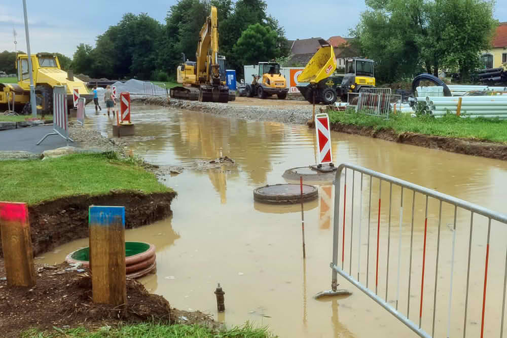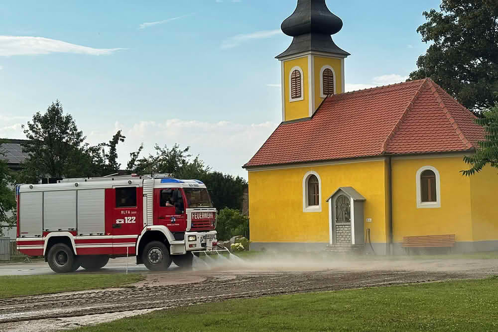 Donnerstagnachmittag fielen in der Gemeinde Raabs an der Thaya innerhalb kurzer Zeit große Regenmengen und führten zu mehreren Feuerwehreinsätzen. In Luden, Eibenstein, Nonndorf bei Raabs, Trabersdorf und Zemmendorf standen 32 Feuerwehrleute bei Auspump- und Reinigungsarbeiten im Einsatz.
