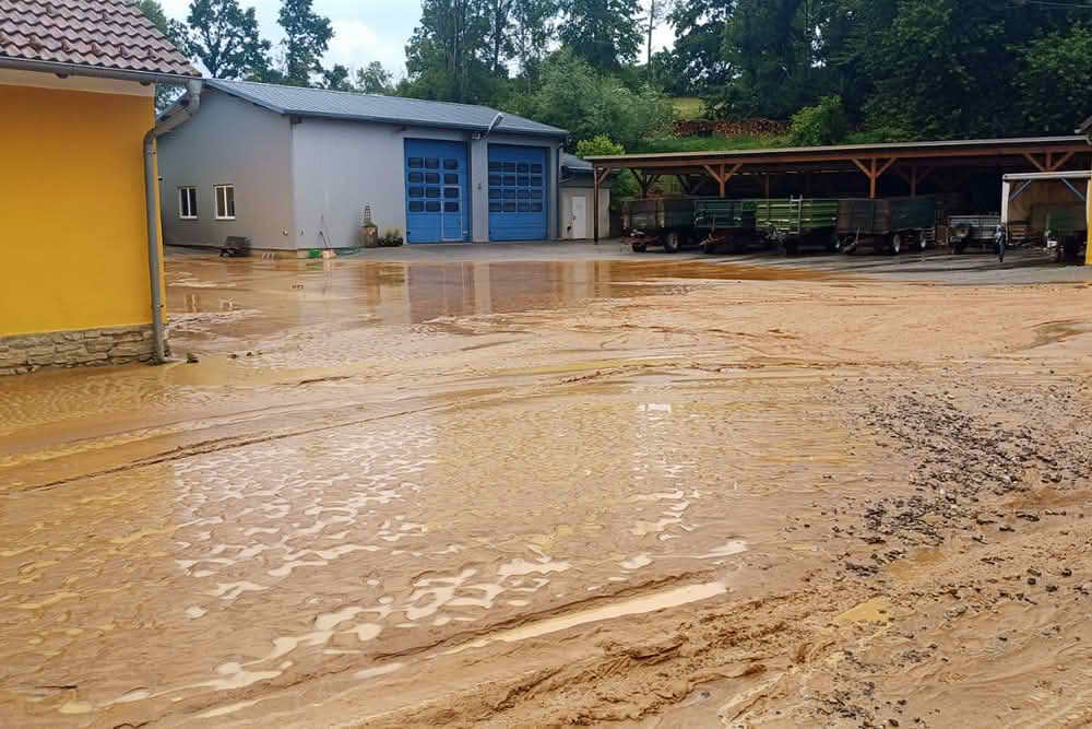 Die Regenmengen – private Regenmessstationen verzeichneten stellenweise in einer viertel Stunde rund 50 Liter Niederschlag pro Quadratmeter – sorgten in den betroffenen Ortschaften für überflutete Keller und Straßen.