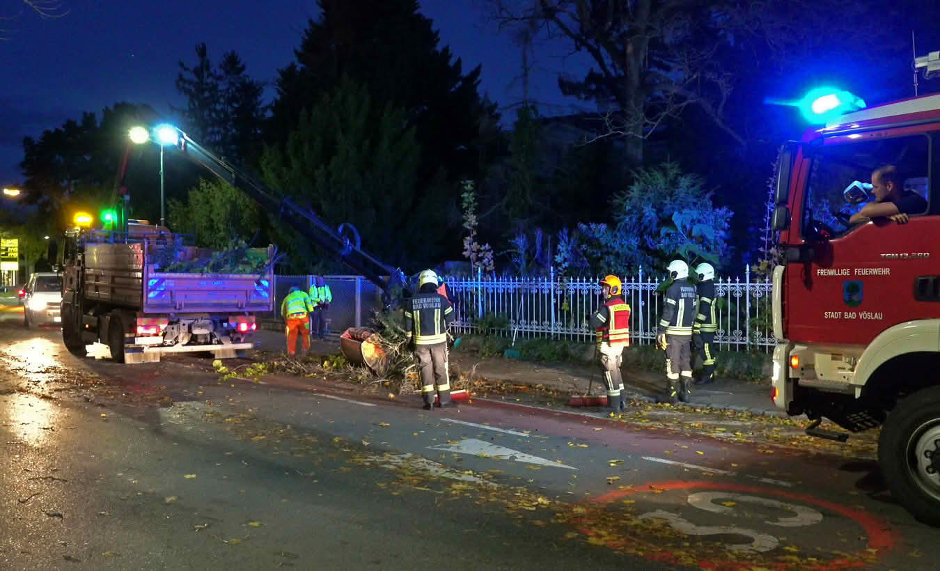 Um 06.38 Uhr musste die Freiwillige Feuerwehr Stadt Bad Vöslau zu einem umgestürzten Baum in die Badener Straße ausrücken, der über der Fahrbahn lag. Gemeinsam mit dem städtischen Bauhof war das Hindernis rasch entfernt bevor der Morgenverkehr einsetzte.