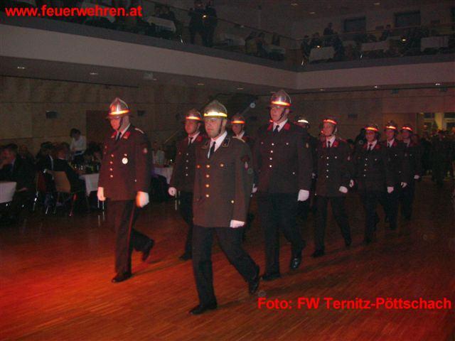 Zu Trompetenfanfaren wurde der Ball (wie im Vorjahr gut bei den Besuchern angenommen) durch den Paradeeinmarsch der Feuerwehr eingeleitet. Nach der offiziellen Eröffnung durch den Kommandanten, wo die Gemeindevertreter, Stadt- und Gemeinderäte, Vertreter der umliegenden Feuerwehren und diverse Ehrengäste aufs Herzlichste begrüßt wurden, erfolgte der 2.Teil des Einmarsches.