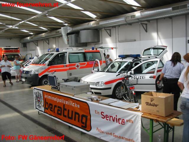 Die Feuerwehr der Stadt Gänserndorf, die Betriebsfeuerwehr OMV Gänserndorf, das Rote Kreuz mit Suchhundestaffel, Feldküche und Notarztwagen, die Exekutive mit Polizeiinspektion Gänserndorf und Bundesgrenzschutz Dürnkrut sowie der Notarzthubschrauber „Robin 5“ stellten eindrucksvoll ihre Schlagkraft unter Beweis. Der Stand der Stadtfeuerwehr war besonders informativ gestaltet. Man konnte sich einen Überblick über die derzeit aktuelle Schutzbekleidung im Bereich Atem- und Körperschutz machen. Weiters wurden das Tanklöschfahrzeug 3000 und das Einsatzvorausfahrzeug zur Menschenrettung ausgestellt.