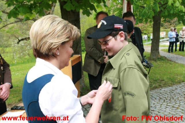 Das goldene Wissenstestabzeichen erhielten Gaigg Sebastian (FF Ohlsdorf) und Pilz Reinhard (FF Aurachkirchen), sowie das bronzene Abzeichen Lukas Fürtbauer und Andreas Schober (beide FF Aurachkirchen) durch Frau Bürgermeisterin Eisner Christine überreicht.