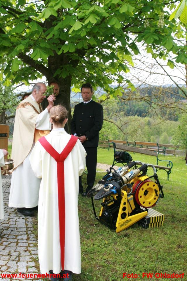 Nach dem Marsch vom Gerätehaus Aurachkirchen zur Römerkirche mit Begleitung des Musikvereines Ohlsdorf fand die Florianimesse statt. Nach der von Dr.Dr. Enichlmayr abgehaltenen Messe konnten am Vorplatz bei trockenem Wetter die Ehrung von Feuerwehrkameraden/innen und die Segnung des neuen hydraulischen Rettungsgeräts der Ohlsdorfer Feuerwehr abgehalten werden.