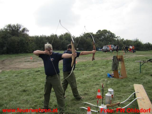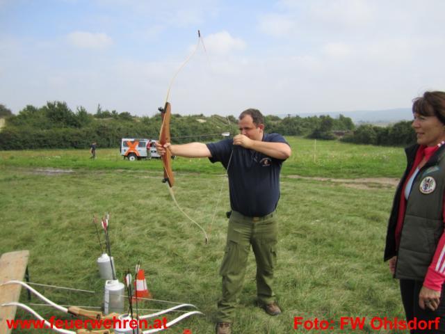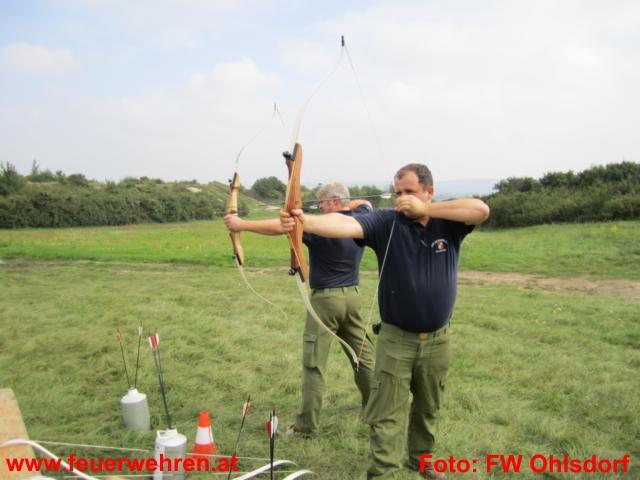 An der dritten Station bewiesen die Teilnehmer Geschicklichkeit. Mit einem Range Rover musste mit dem rechten Vorderrad ein Drehlicht ein und mit dem Hinterrad ausgeschaltet werden. Danach ging es in die Verschränkung und beim Höchststand des Reifens wurde das Fahrzeug eingeparkt. Danach wurde die Höhe gemessen und somit die Rangliste erstellt. Dabei bewies das Feuerwehr Ohlsdorf Team Nerven. Stefan Pamminger stellte mit 105 cm und Ernst Pesendorfer mit 103,9 cm die Tageshöchstweite und gewann diese Station nebenbei mit einer sehr guten Rundenzeit. Als Fun-Station durften sich die Teilnehmer am Bogen beweisen. Eine Profi-Bogenschützin fungierte als Trainerin und brachte uns die richtige Halterung bei. Sogar der eine oder andere Pfeil traf die Mitte.