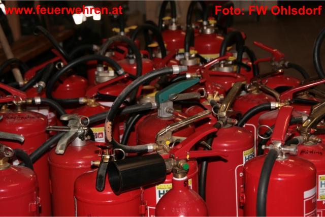 Jedes Jahr organisiert die Freiwillige Feuerwehr Ohlsdorf eine Überprüfung für tragbare Feuerlöscher. Die diesjährige fand am Freitag, 28. Jänner und Samstag 29. Jänner 2011 im Gerätehaus der Ohlsdorfer Feuerwehr statt. Zahlreiche Feuerlöscher gab es durch die Fachfirma „HBS – Haas Brandschutz und Sicherheit“ zu überprüfen. Unterstützt wurde die Fachfirma von Kameraden der Ohlsdorfer Feuerwehr. So konnten an den zwei Tagen 150 Feuerlöscher auf „Herz und Nieren“ geprüft werden.