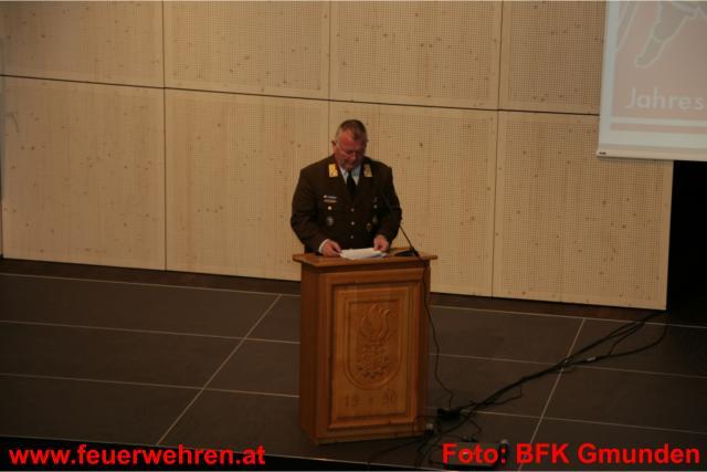 Der Kurzbericht von BR Christian Huemer spiegelte sich in Form eines Kurzkommentares des schriftlichen Jahresberichtes wieder. Der Abschnitt Gmunden teilt sich in insgesamt 13 Pflichtbereiche (2 Stadtgemeinden, 3 Marktgemeinden, 8 Gemeinden) auf, in denen 27 Freiwillige Feuerwehren und 2 Betriebsfeuerwehren flächendeckend aufgeteilt sind.