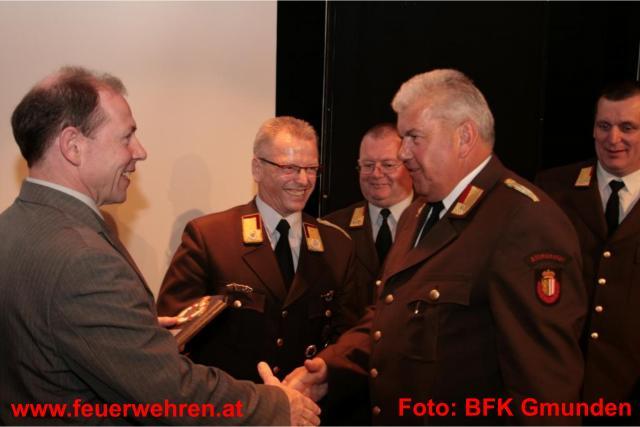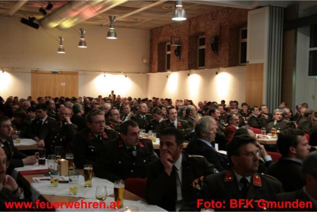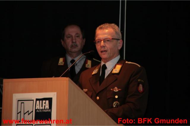 Zum diesjährigen Bezirksfeuerwehrtag am Mittwoch, den 30. März 2011 konnte Bezirksfeuerwehrkommandant OBR Robert Benda im restlos gefüllten Veranstaltungssaal im ALFA Steyrermühl nicht nur 291 Kameraden/innen von den Feuerwehren des Bezirkes Gmunden begrüßen, sondern auch eine große Anzahl an Ehrengästen. Der Einladung gefolgt waren Feuerwehrreferent Landesrat Max Hiegelsberger, LAbg. Martina Pühringer, LAbg. Arnold Schenner, LAbg. Bgm. Hannes Peinsteiner, Bundesrat Josef Steinkogler, Bezirkshauptmann Ing. Mag. Alois Lanz, Landesfeuerwehrkommandant- Stellvertreter Dr. Wolfgang Kronsteiner, Bezirksfeuerwehrkurat KAN Johannes Schickelberger, Bezirksfeuerwehrarzt Medizinalrat Dr. Leopold Bimminger, Landesfeuerwehrarzt Dr. Lothar Leitner, zahlreiche Bezirks- und Abschnittskommandanten aus Oö. sowie aus dem benachbarten Salzburg und zahlreiche Vertreter befreundeter Hilfsorganisationen.