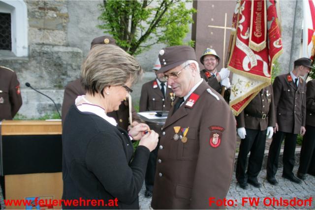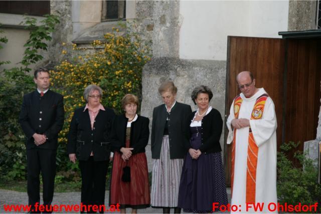 Nach der von Pfarrer Jaroslaw Niemyjski abgehaltenen Messe konnte am Kirchenplatz bei trockenem Wetter die Ehrung von Feuerwehrkameraden/innen abgehalten werden. Auch die Kranzniederlegung beim Kriegerdenkmal in Ohlsdorf fand unter der musikalischen Umrahmung durch den Musikverein Ohlsdorf statt.