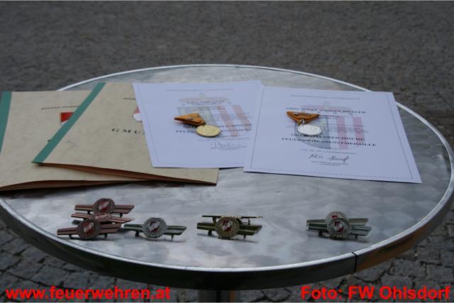 Mit der 40-jährigen Medaille für Feuerwehrtätigkeit wurde Kamerad Windischbauer Josef (FF Ohlsdorf) geehrt. Die 50-jährige Medaille erhielt Josef Keiblinger (FF Ohlsdorf) vom Kommandanten HBI Ernst Pesendorfer und Bgm. Christine Eisner überreicht. Die Bezirksmedaille dritter Stufe ging an Franz Maxwald und die der zweiten Stufe an Gaigg Adolf.