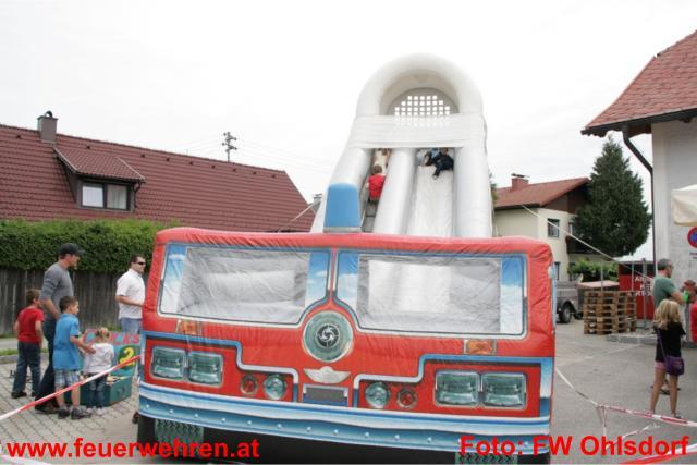 Ein großzügiges Rahmenprogramm mit mehreren Stationen für Kinder wurde angeboten und auch wahrgenommen. So konnten die Kinder in der Hüpfburg oder an der riesigen Feuerwehrauto- Rutsche rumturnen und auch mit Feuerwehrfahrzeugen eine Rundfahrt machen. Nebenbei gab es im Freigelände der Feuerwehr Brandschutzvorführungen durch die Firma HBS- Haas Brandschutz und Sicherheit aus Regau. Neben Fettbrandsimulationen konnte jeder Besucher auch selbst einen Feuerlöscher testen und Löschübungen durchführen.