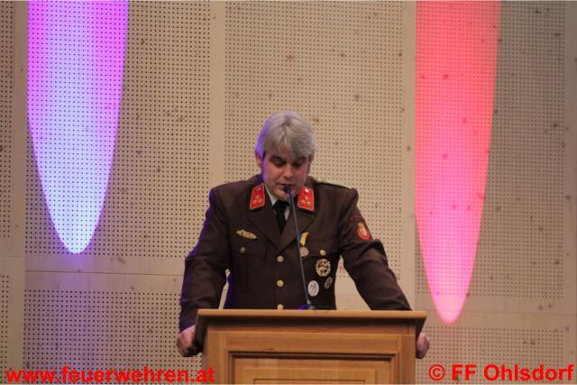 Pflichtbereichskommandant HBI Ernst Pesendorfer vertiefte und unterstrich die Ausführungen seiner Vorredner. Großes Augenmerk wurde auch auf die Aus- und Weiterbildung gelegt. 29 Lehrgänge wurden besucht und bei den verschiedensten Bewerben 20 Abzeichen erreicht. Auch die Tagesalarmbereitschaft ist in Ohlsdorf sehr hoch. Da das Jahr der Freiwilligkeit 2011 in Ohlsdorf eher schnell verblies, wird in diesem Jahr intensiv die Mitgliederwerbung für Aktiv- und Jugenddienst aufgebaut, um ein Loch zu schließen, welches durch geburtenschlechtere Jahre hervorgerufen wurde.