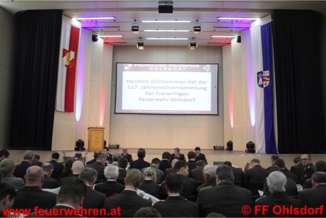63 Feuerwehrkameraden und viele Ehrengäste (OBR Robert Benda, Bürgermeisterin Christine Eisner, Vize- Bgm. Alexander Ortner, Vize- Bgm. Johann Halbmair, Gemeinderat Grafinger Georg und; Schögl Wolfgang, Kommandant HBI Mirlacher Robert der FF Aurachkirchen, HBI Thomas Dreiblmeier der FF Wiesen, HBI Johannes Briganser der FF Pinsdorf, ÖWR Ortstellenleiter Laakirchen Peter Prüwasser, Polizei Bez. Insp. Gardermaier Gerhard, die Fahnenpatinen Preinstorfer und Peiskammer, sowie eine Abordnung der FF Hinterberg unter HBI Josef Voggeneder konnten von Kommandant HBI Pesendorfer Ernst am Freitag, 20. Jänner 2012 zur 117. Jahresvollversammlung im neuen Veranstaltungssaal MEZZO begrüßt werden.