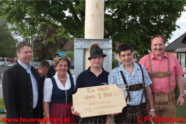 Am Abend des 30. April 2012 wurde mit der Unterstützung der Ohlsdorfer Feuerwehr sowie zahlreichen Helfern der Katholischen Jugend und der Gemeindebevölkerung der Maibaum aufgestellt. 25 Kameraden von jung bis alt waren beim traditionellen Maibaumsetzen in Ohlsdorf mit dabei. Der Ohlsdorfer Atemschutzwart-Stellvertreter Schiffbänker Karl suchte als „Baumspender“ einen 33 Meter hohen Baum aus.