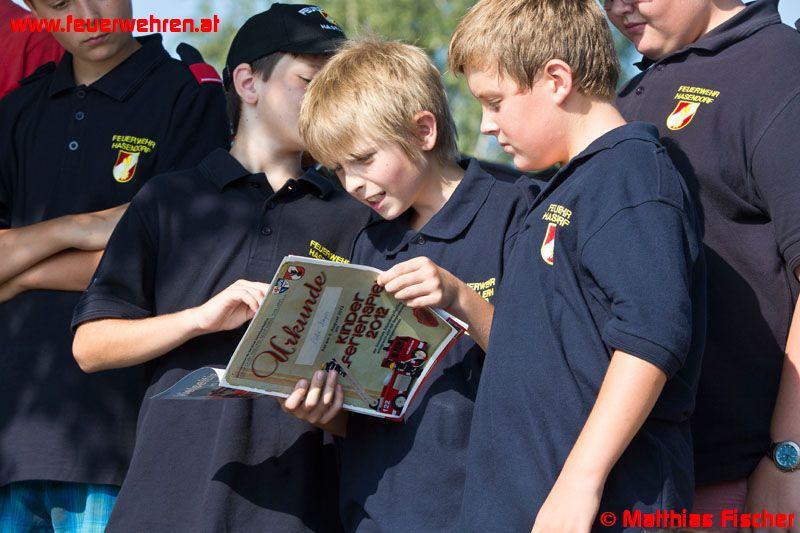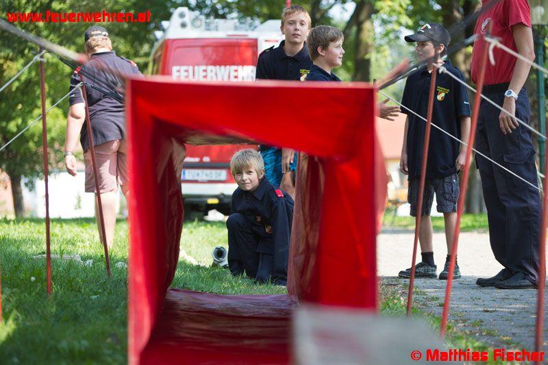 Die Feuerwehrjugend Thallern (unter Feuerwehrjugendführer SB Florian Zink und Feuerwehrjugendhilfsführer EHBI Alois Zink) gestaltete die 3. Station der Feuerwehr Thallern: Ein Hindernisparcours (mit Elementen aus dem Feuerwehrjugendbewerb) forderte die Kinder und auch einige Eltern, die sich dieser Aufgabe ebenfalls stellten. Durch die Zeitnehmung war ein zusätzlicher Ansporn gegeben. Bei der Hindernisübung mussten ein Schlauch und ein Strahlrohr angekuppelt werden und dieser dann durch den Tunnel der Feuerwehrjugend über eine Bank gezogen werden. Beim Zielspritzen mit einem D-Schlauch in ein 10 cm großes Loch in der Spitzwand mussten noch 5 l Wasser aus drei Meter Entfernung gebracht werden. Mit der Tragkraftspritze der FF Thallern (Maschinist Feuerwehrkommandant OBI Karl Hintermayer) wurde sowohl das Zielspritzen als auch die