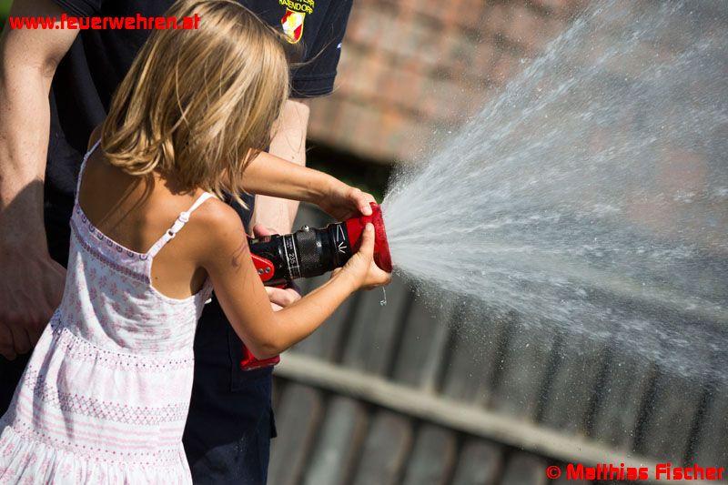 Die 1. Station wurde von der Feuerwehr Reidling durchgeführt: Das Spritzen mit dem Wasserwerfer des TLFA 4000 begeisterte die Kinder ebenso wie das Fahren mit dem Oldtimer DODGE.