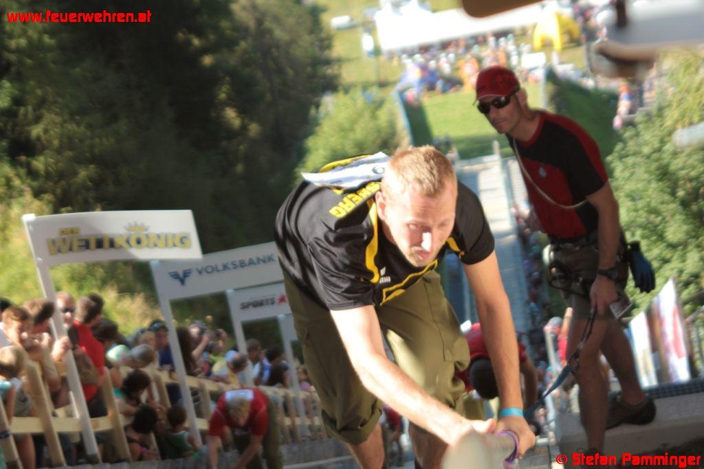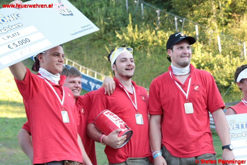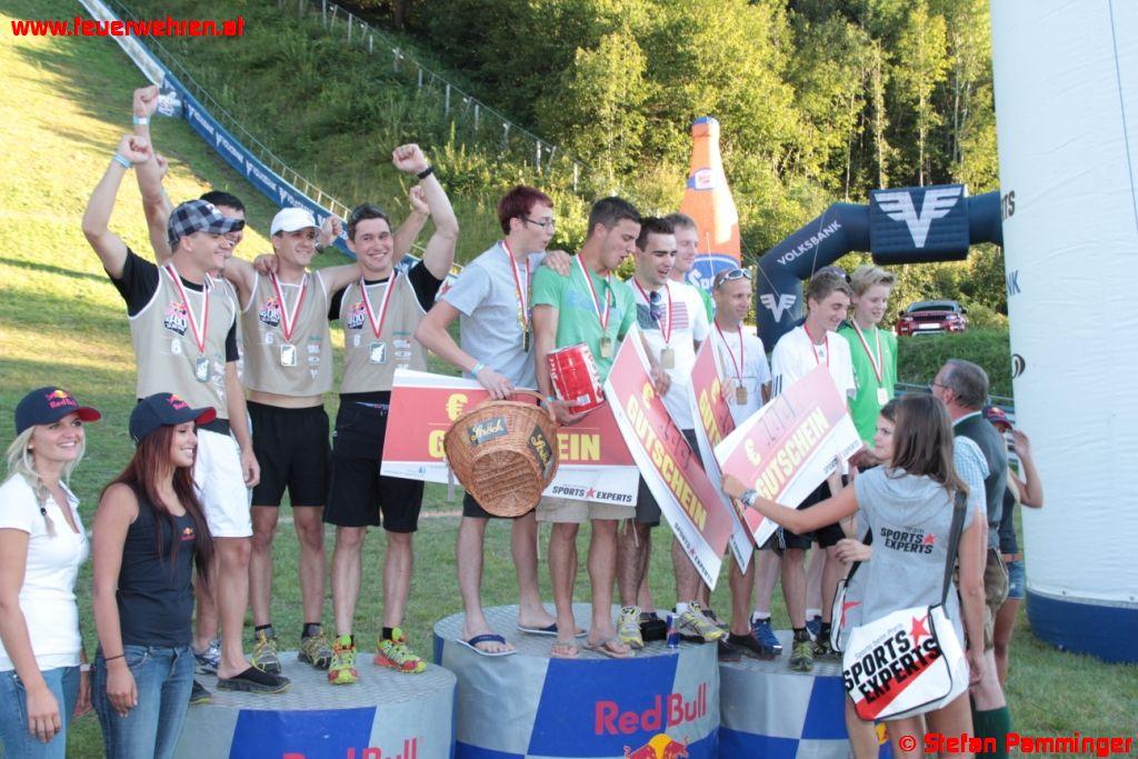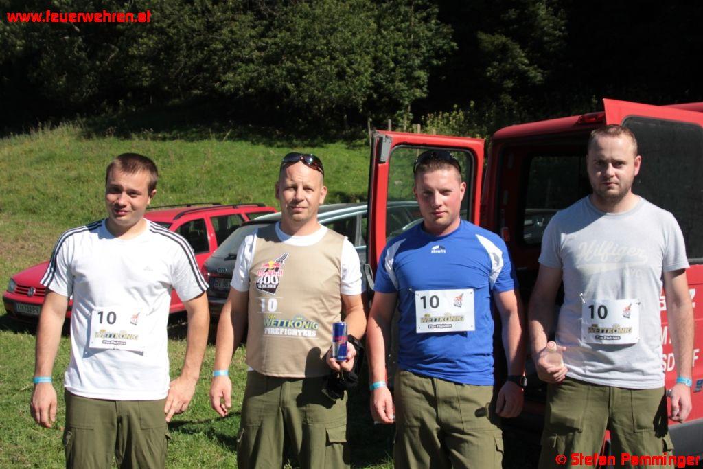 „Härter als der Bergmarathon„, sagte Andreas Maxwald von der FF Ohlsdorf. „Beim Bergmarathon kannst du dir deine Kondition den ganzen Tag einteilen, aber hier musst du innerhalb von Sekunden alles geben bis zur völligen Erschöpfung.“ So sah es auch Karl Schiffbänker welcher in der zweiten Ohlsdorfer Mannschaft gestartet war. „Ich dachte ich gehe als Startläufer die Sache ruhig an, aber als der Startschuss kam und ich sah wie die anderen starteten, war ich bereits fünf Meter hinten die man bei 72 Prozent Steigung nicht mehr aufholen kann.“ Somit kam die Mannschaft der FF Ohlsdorf 1 (Andreas Maxwald, Thomas Hessenberger, Stefan Enichlmayr und Christoph Katherl) auf den neunten und die Mannschaft FF Ohlsdorf 2 (Andreas Raffelsberger, Karl Schiffbänker, Markus Laimer und Michael Thallinger) auf den 12 Gesamtplatz. „Wenn man bedenkt dass wir eigentlich null trainierten, ist das Erreichen des Zieles wie ein Sieg„, so Christoph Katherl. Eine Teilnahme beim Red Bull 400 im Jahr 2013 steht jetzt bereits fest.