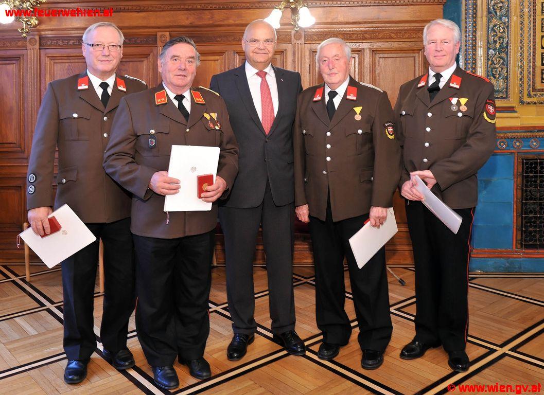Wien (OTS) – In Galauniform und mit Angehörigen als Unterstützung haben neun Mitglieder der Freiwilligen Feuerwehr Breitenlee die hohen Auszeichnungen Mittwochnachmittag im Stadtsenatssitzungssaal des Wiener Rathauses entgegen genommen. Landtagspräsident Prof. Harry Kopietz, selbst Landesfeuerwehrrat und Hauptbrandmeister der Berufsfeuerwehr, war es eine besondere Ehre und Freude, seinen Kollegen die Silbernen und Bronzenen Medaillen für mehr als 25 Jahre und mehr als 40 Jahre Tätigkeit zu überreichen.