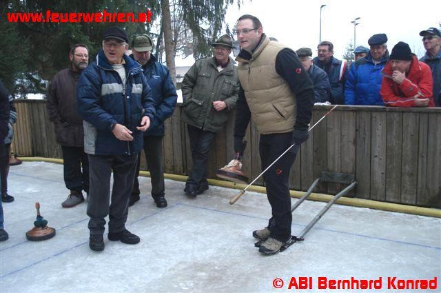 Nach der Auslosung von zwei Gruppen mit jeweils 23 Feuerwehrmitgliedern, konnten EABI Ludwig Mitteregger und ABI Bernhard Konrad als „Mohre“ das Eisstockturnier starten.