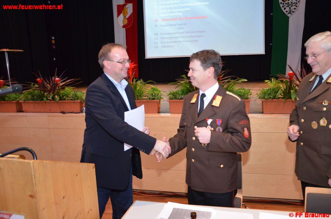Am 01.03.2013 fand im Veranstaltungszentrum Braunau die 147. Jahresvollversammlung der Feuerwehr Braunau statt. Kommandant ABI Klaus Litzlbauer berichtete bei der Eröffnung von einem ereignisreichen Jahr 2012.