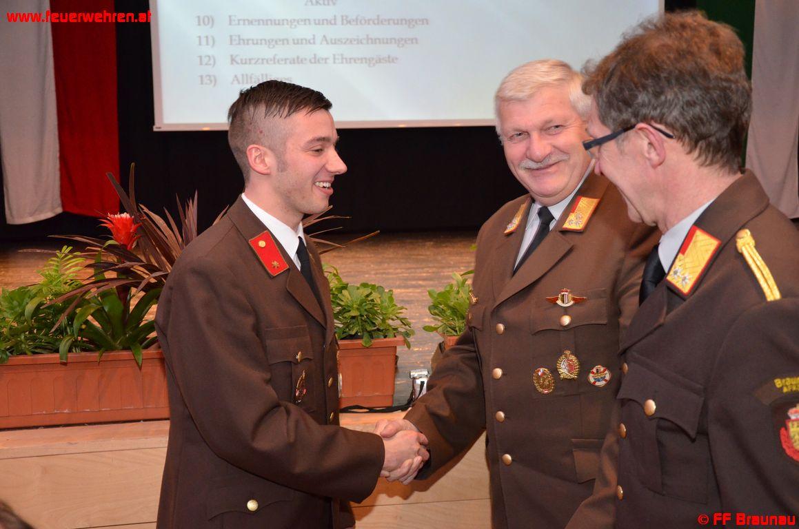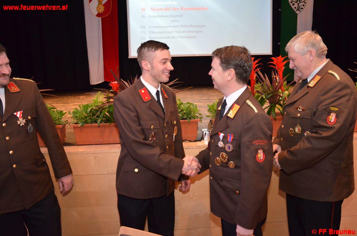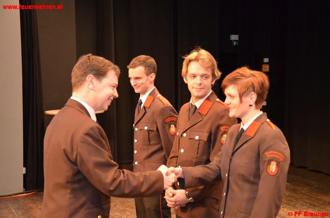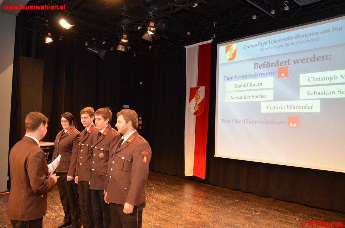 Per 31.12.2012 verzeichnete die Feuerwehr Braunau 116 Voll-Mitglieder und 12 Gast-Mitglieder. Ebenfalls zu erwähnen ist die erfreuliche Anzahl an Jugendfeuerwehr-Mitgliedern. Mit Ende des Jahres zählte die Jugendgruppe 26 Mitglieder.
