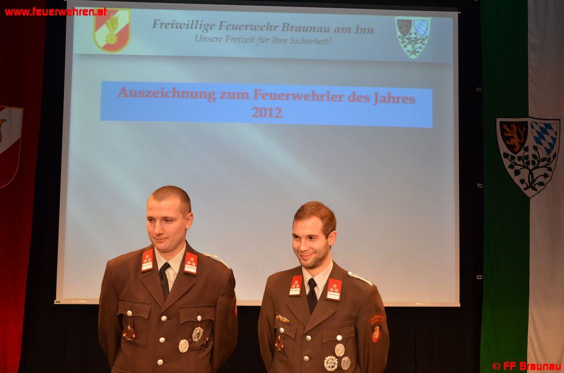 Neben den offiziellen Beförderungen und Ernennungen wurden wieder die „Feuerwehrler des Jahres“ geehrt. Im Jahr 2012 wurden für Ihren besonderen Einsatz HBM Daniel Spindler, sowie HBM Ralph Mühlbauer ausgewählt.