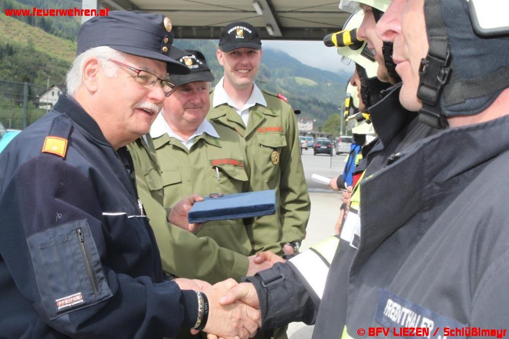 Vor der Abzeichen-Übergabe gratulierte Landesbewerbsleiter ABI d.F. Johann Bretterklieber den Triebener Kameraden und teilte mit, dass die zweite Triebener Gruppe die steiermarkweit 2000. Gruppe war, die zur BDLP antrat. Als Erinnerung an diesen denkwürdigen Tag überreichte er dem Kommandanten HBI Markus Parteder eine Ehrenurkunde des Landesfeuerwehrverbandes, dankte für die Bereitschaft zur Weiterbildung und überbrachte die Glückwünsche und Grüsse des Präsidenten des ÖBFV, LBD Albert Kern.