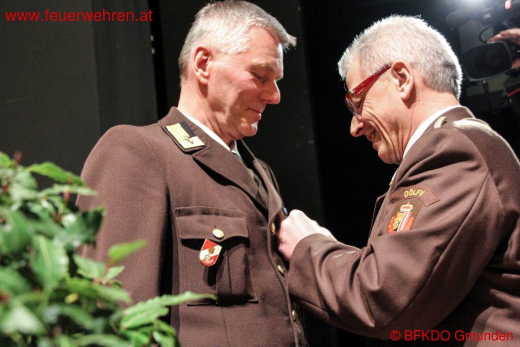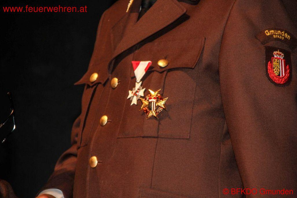 Ebenso wurden zahlreiche Mitglieder des Bezirksfeuerwehrkommandos und des LFK bei der heurigen Tagung ausgezeichnet. So erhielten HAW Franz Wildauer, HAW Siegfried Hofauer, HAW Waldemar Hessenberger, HAW Hubert Richter, Bezirksfeuerwehrkurat KAN Johannes Schickelberger & Bezirksfeuerwehrarzt Medizinalrat Dr. Leopold Bimminger die Verdienstmedaille des ÖBFV 3. Stufe. Der für den Katastrophenschutz zuständige Leiter des Landesfeuerwehrkommandos, OBR Ing. Siegfried Hörschläger erhielt die Bezirksmedaille Gmunden 1. Stufe.