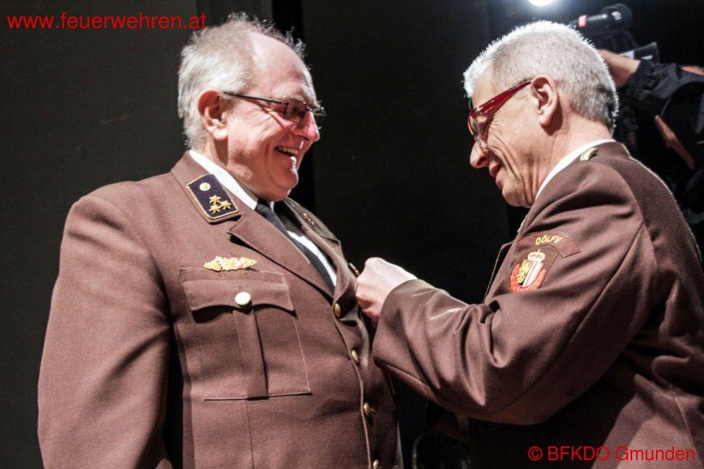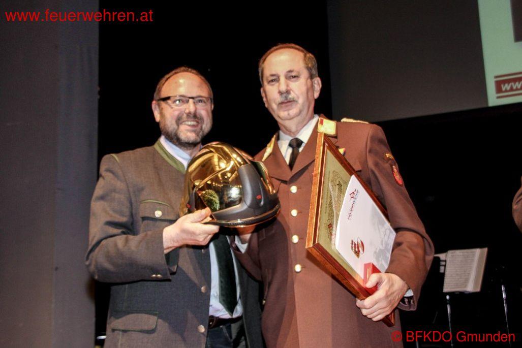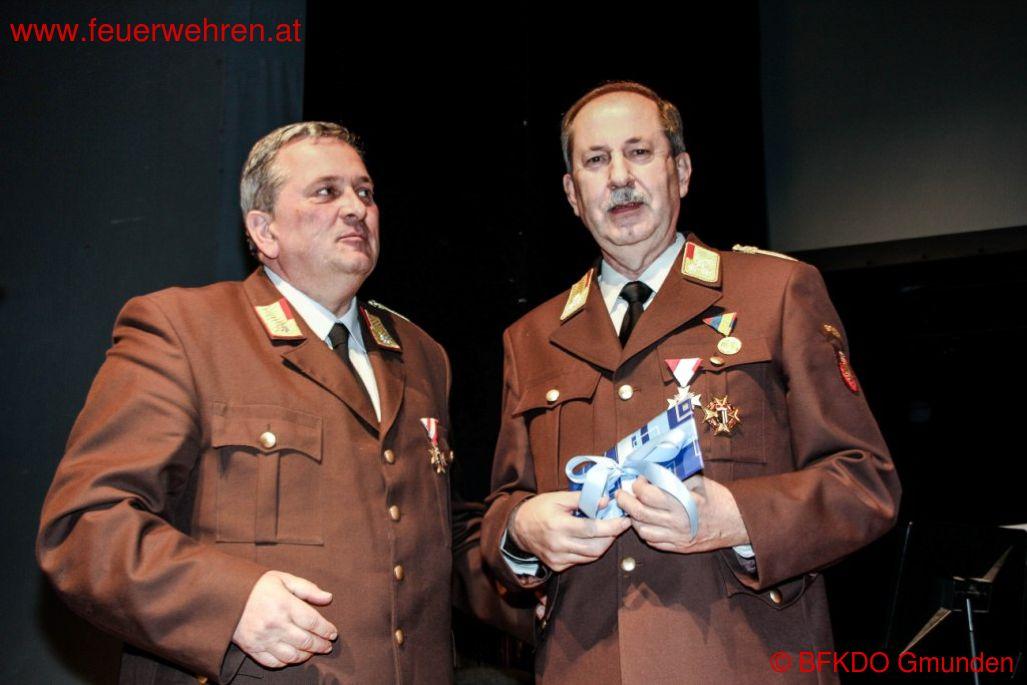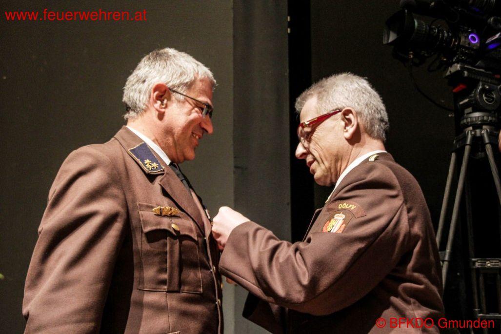 Zahlreiche Geschenke seitens der Politik, der Bürgermeister/in und der Feuerwehren des Bezirkes wurden übergeben. Als Auszeichnung für die vorbildliche Arbeit im Bezirk Gmunden konnte BR Stefan Schiendorfer und BR Christian Huemer seine Arbeit mit der Verdienstmedaille des Bezirkes Gmunden der 1. Stufe würdigen. Minutenlanger Applaus und Standing Ovations gab es als Geste der Teilnehmer der Tagung.