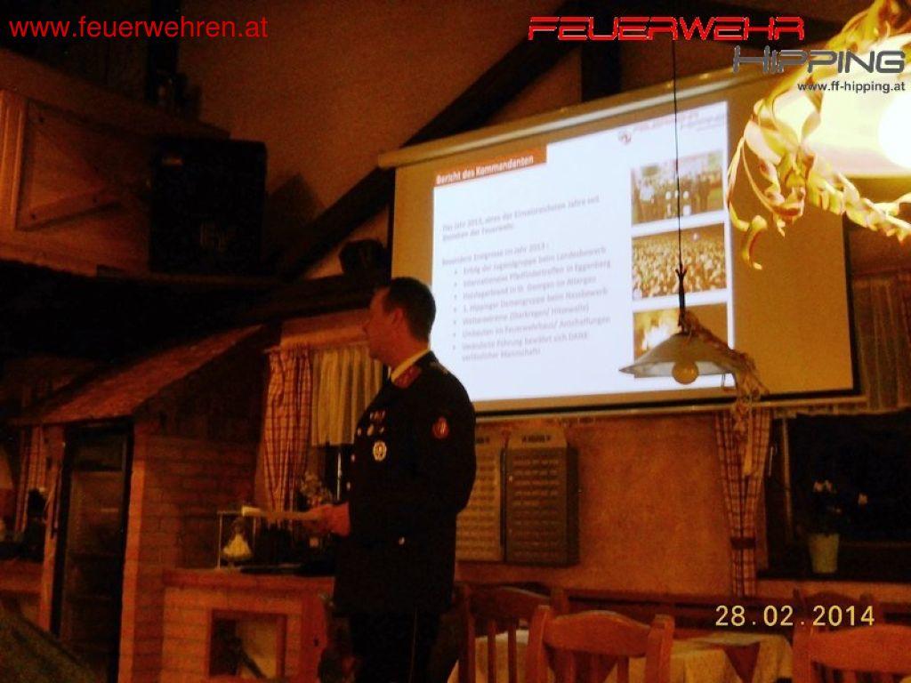 Nach einleitenden Worten und dem Totengedenken legten die Kommandomitglieder der Feuerwehr Hipping Rechenschaft über die geleistete Arbeit im Jahre 2013 ab.