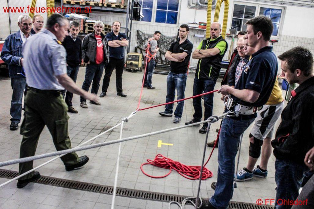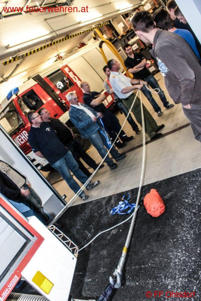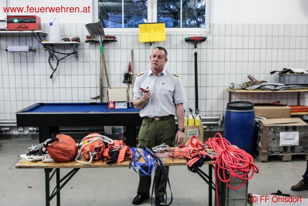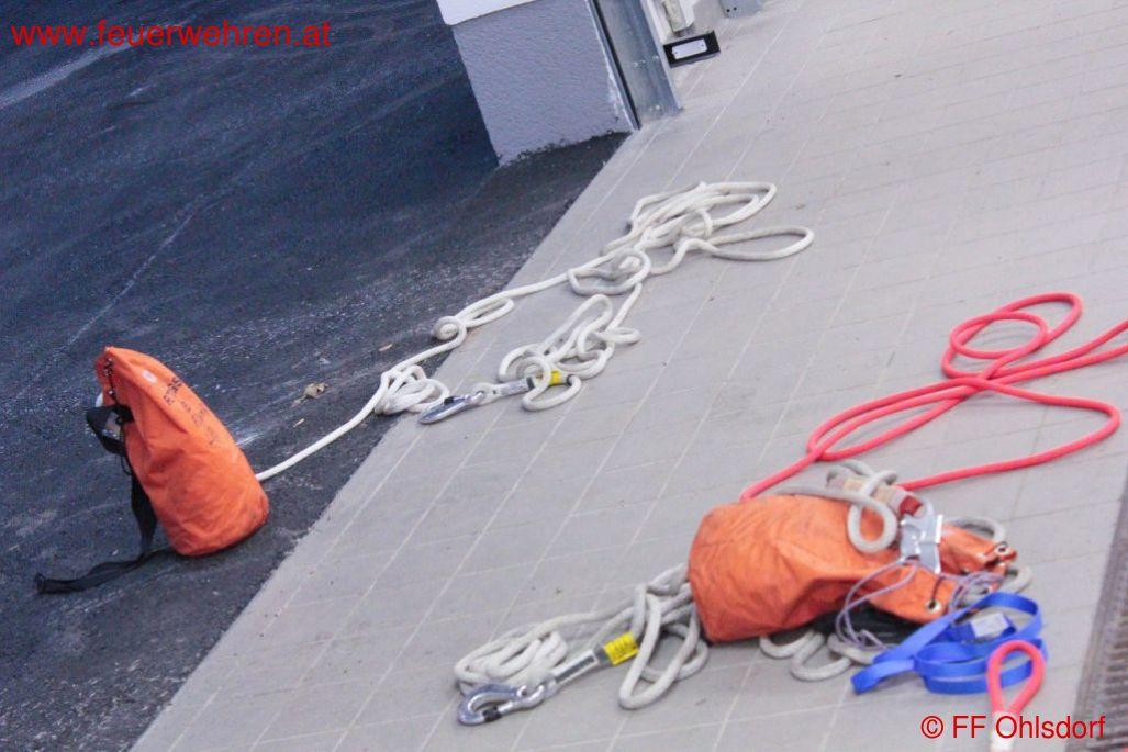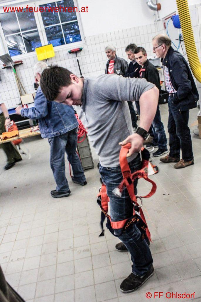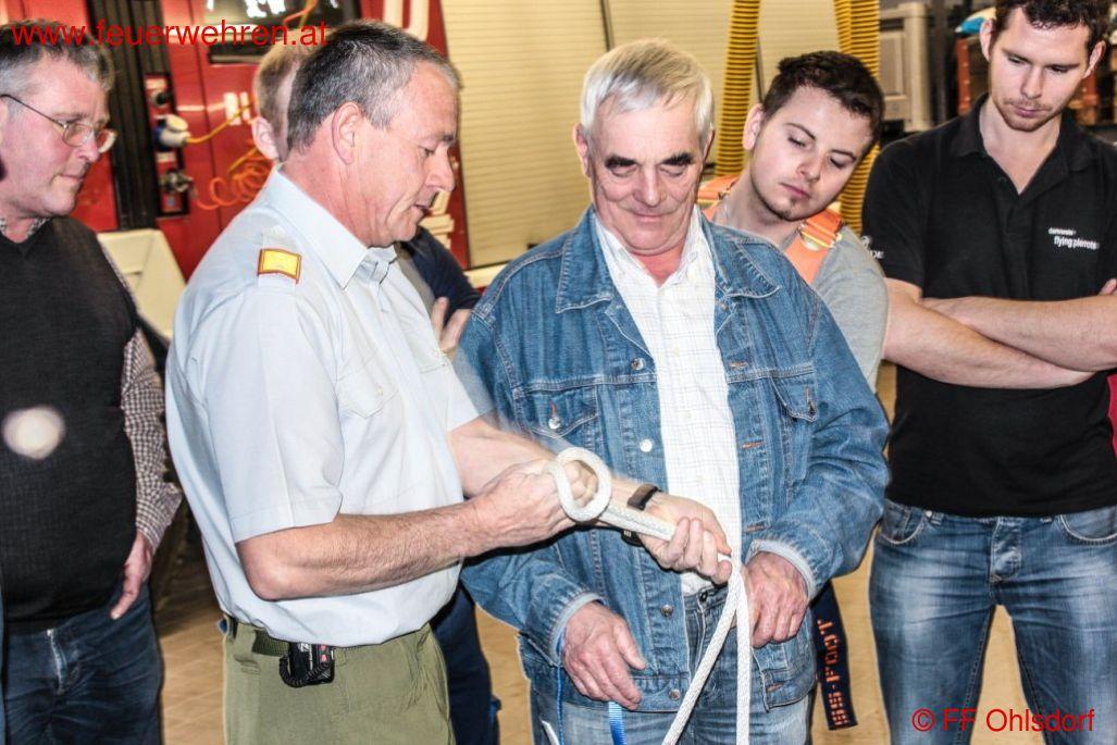 OAW Christian Gruber zeigte bei seiner Schulung auf, dass nur wenige Euro notwendig sind um spezielle Seile und Gurte anschaffen zu können. In der Praxis wurden verschieden Knoten geübt und umgesetzt.